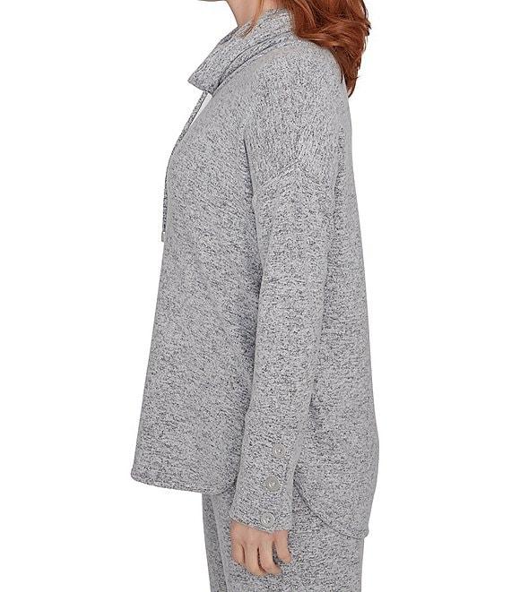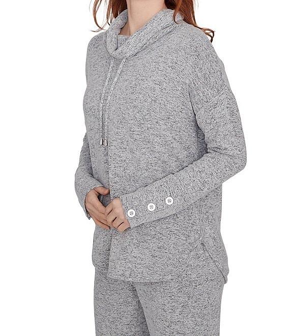 From Ruby Rd. Petite, this top features: Knit fabrication Cowl collar with drawstring Long sleeves with buttons detail Dropped shoulders Round hemline Pullover construction Polyester/rayon/spandex Machine wash/line dry Imported. A must-have wardrobe staple for cool to cold weather. Our ultra-comfortable cozy knit top is detailed with a fashion-forward cowl neck and long sleeves.