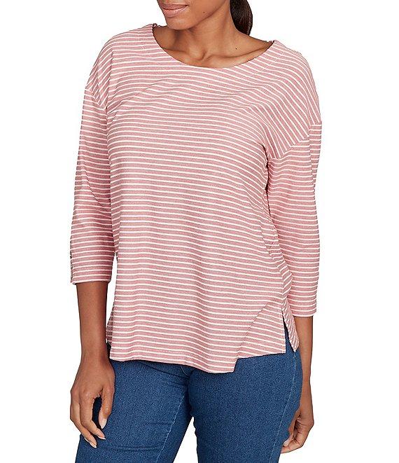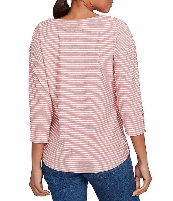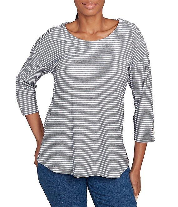 Ruby Rd. Petite Size Stripe Crew Neck 3/4 Sleeve Top