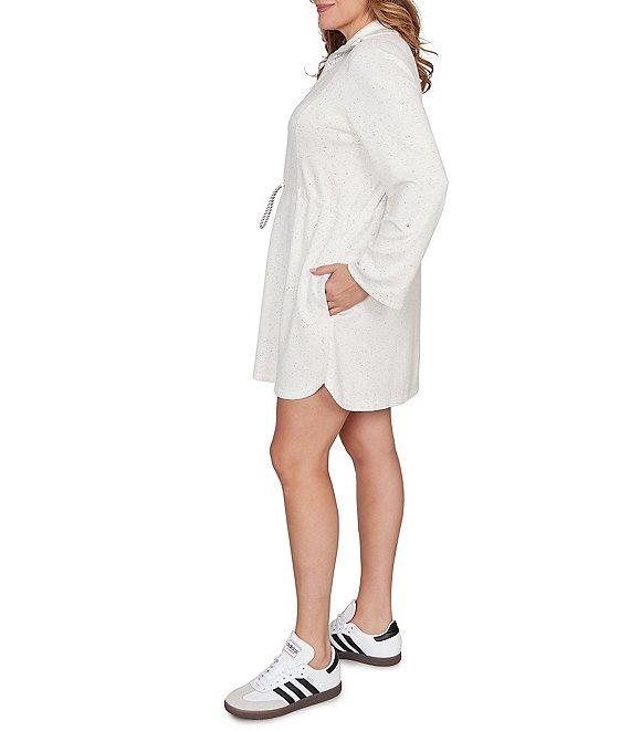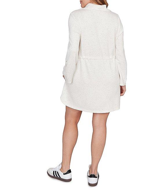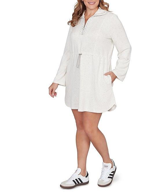From Ruby Rd. Plus this dress features: Ultra-soft speckled knit fabrication Quarter-zip mock neckline Long roll-tab sleeves with buttoned Drawstring waist for shape without structure Side pockets Pullover construction Quarter-zip closure Approx. 37" length Rayon/polyester/spandex Machine wash cold Imported. Weekend ease with a sporty twist. This ultra-soft fleck knit dress features a half zip neckline, cuffed roll-tab sleeves, and a drawstring waist for shape without structure. Finished with side pockets and subtle stitching, its your new favorite one-and-done outfit.