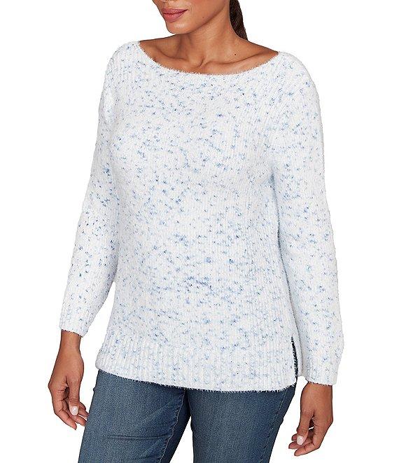 From Ruby Rd., this sweater features: Soft chenille fabrication Boat neckline Long sleeves Speckles and fuzzy eyelash texture Straight hem with side vents Pullover construction Polyester/nylon Hand wash cold/lay flat to dry Imported. Playful speckles and fuzzy eyelash texture give this crew neck sweater personality. Long sleeves, side splits at the hem, and soft chenille fabric keep you snug and stylish.