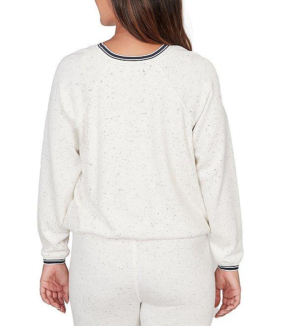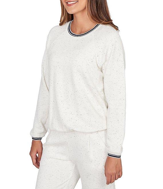Ruby Rd. Soft Speckled Knit Stripe Trim Top