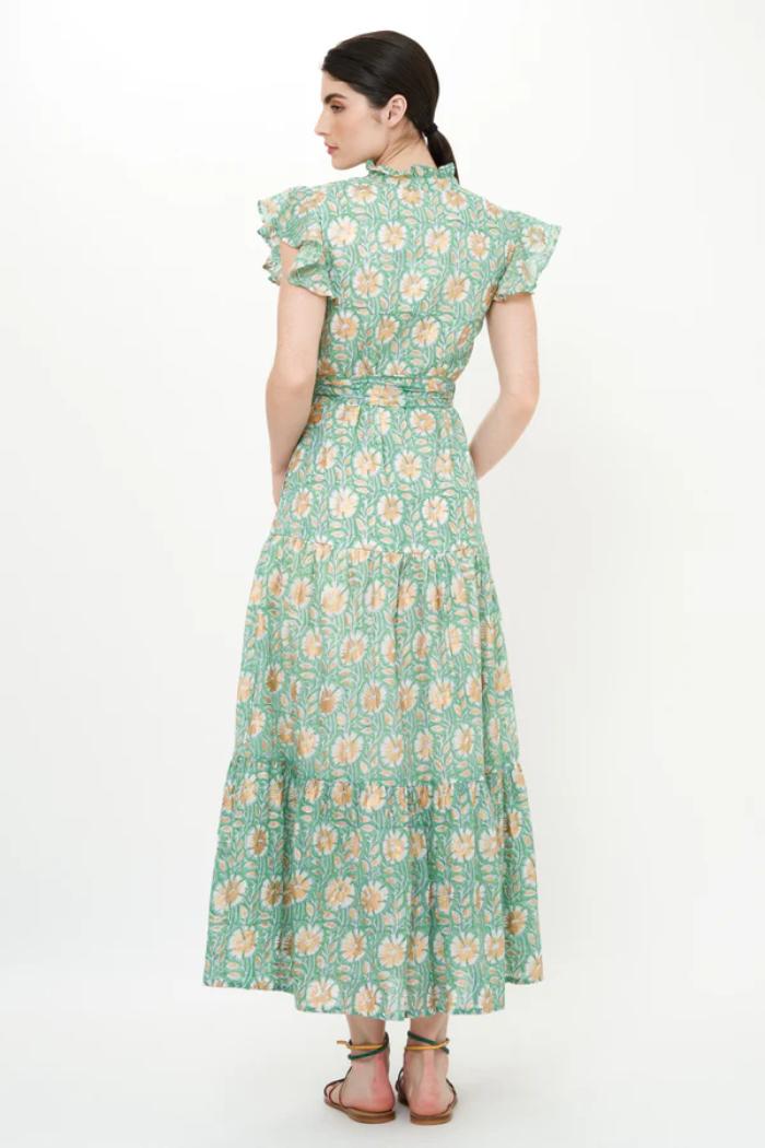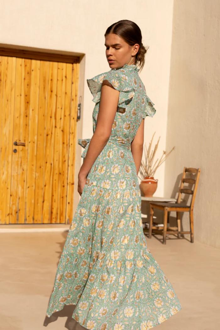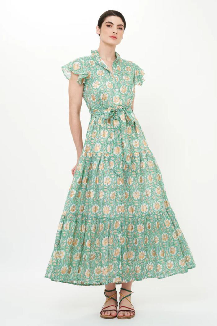 Maxi length tiered shirt dress silhouette