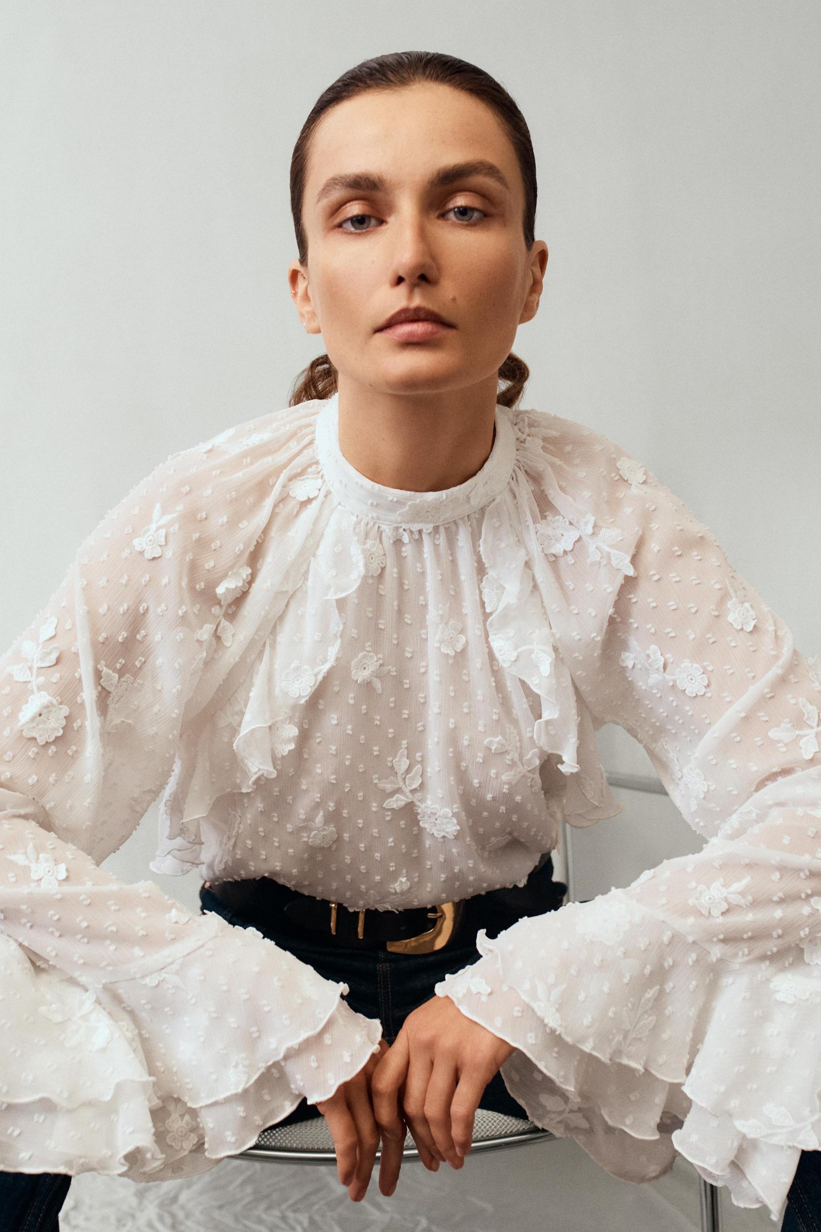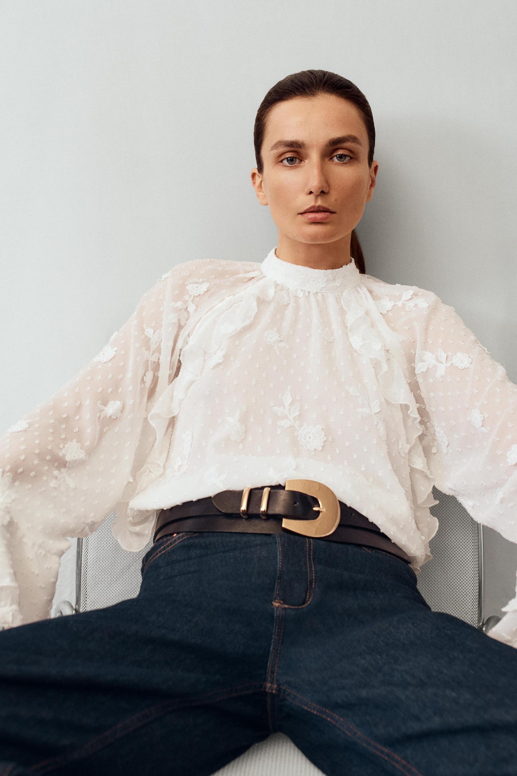 RUFFLED SWISS DOT SHIRT