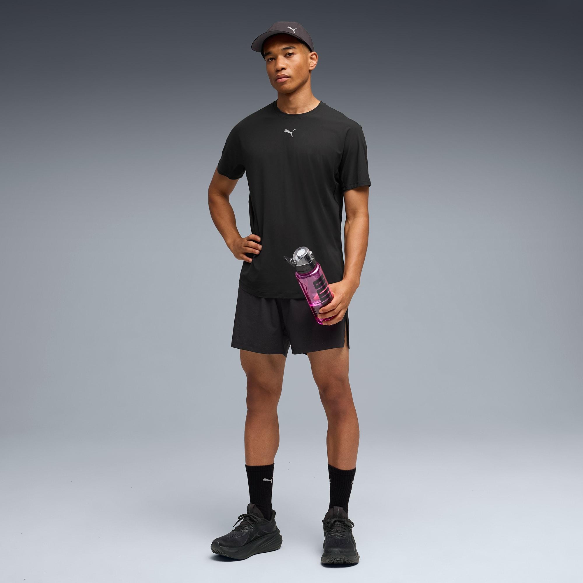 descriptionFeel your best in this running tee. The technical material constructions provides an instant cooling sensation upon contact as you push through distance and heat. Drop-in pockets stash essentials, so you focus on your run, not your gear.Style: 528421_01Color: PUMA Blackmeasure & sizeModel informationModel is 5' 11" tall and is wearing size M.features & benefitsMade with at least 50% recycled materials.detailsFit: BoxyMain material type: PiqueNeck: Crew neckShort sleevesLength: Regularmaterials & careMaterial informationShell: 82% nylon, 18% elastaneCare instructionsUse only mild detergentDo not iron printWash with similar coloursDo not use fabric softenerWash garment in a washing bagExclusive of Decoration