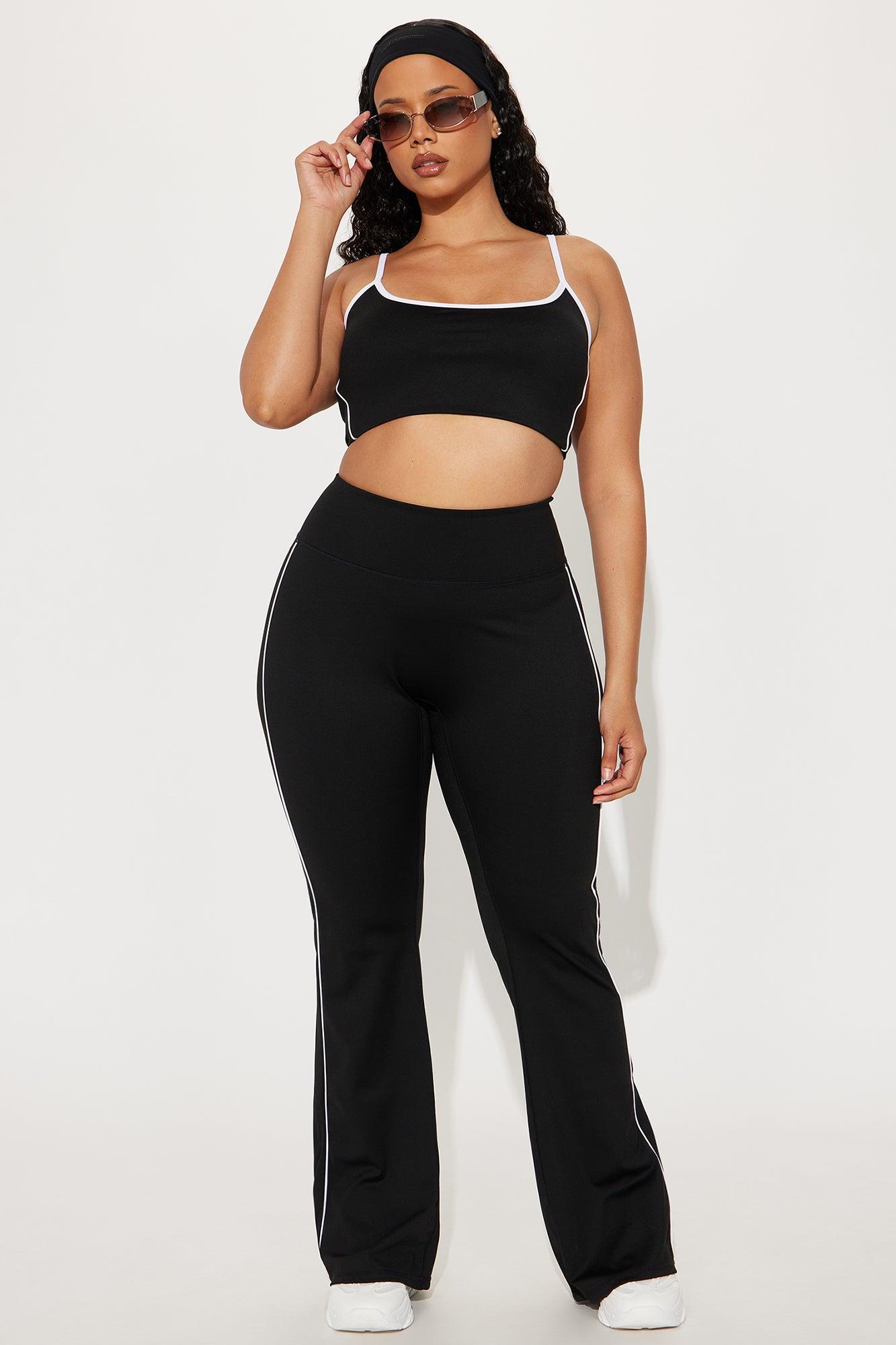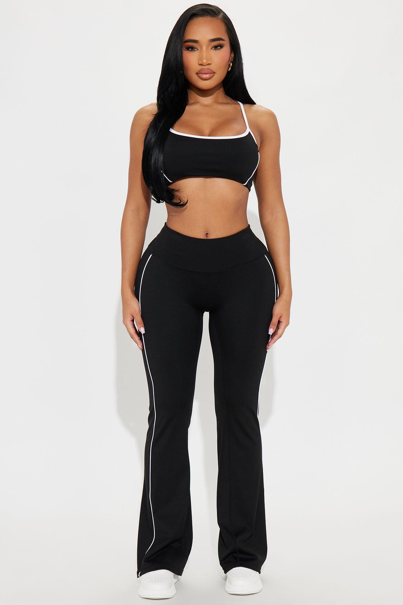 Available In Black And Butter Yellow. Active Set Sports Bra Scoop Neck Sleeveless Active Yoga Pant High Waisted Elastic Waistband 32" Inseam Compression Contrast Trim Low Impact Stretch 75% Nylon 25% Spandex California Proposition 65WARNING: Cancer and Reproductive Harm - www.P65Warnings.ca.gov.