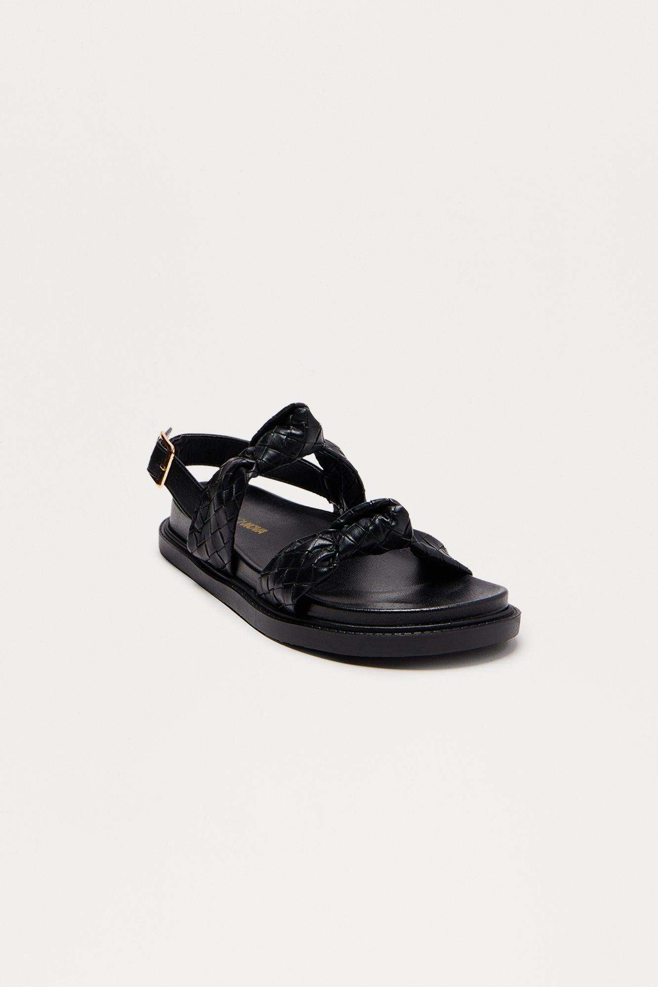 Russ Woven Faux Leather Slides - Black Female