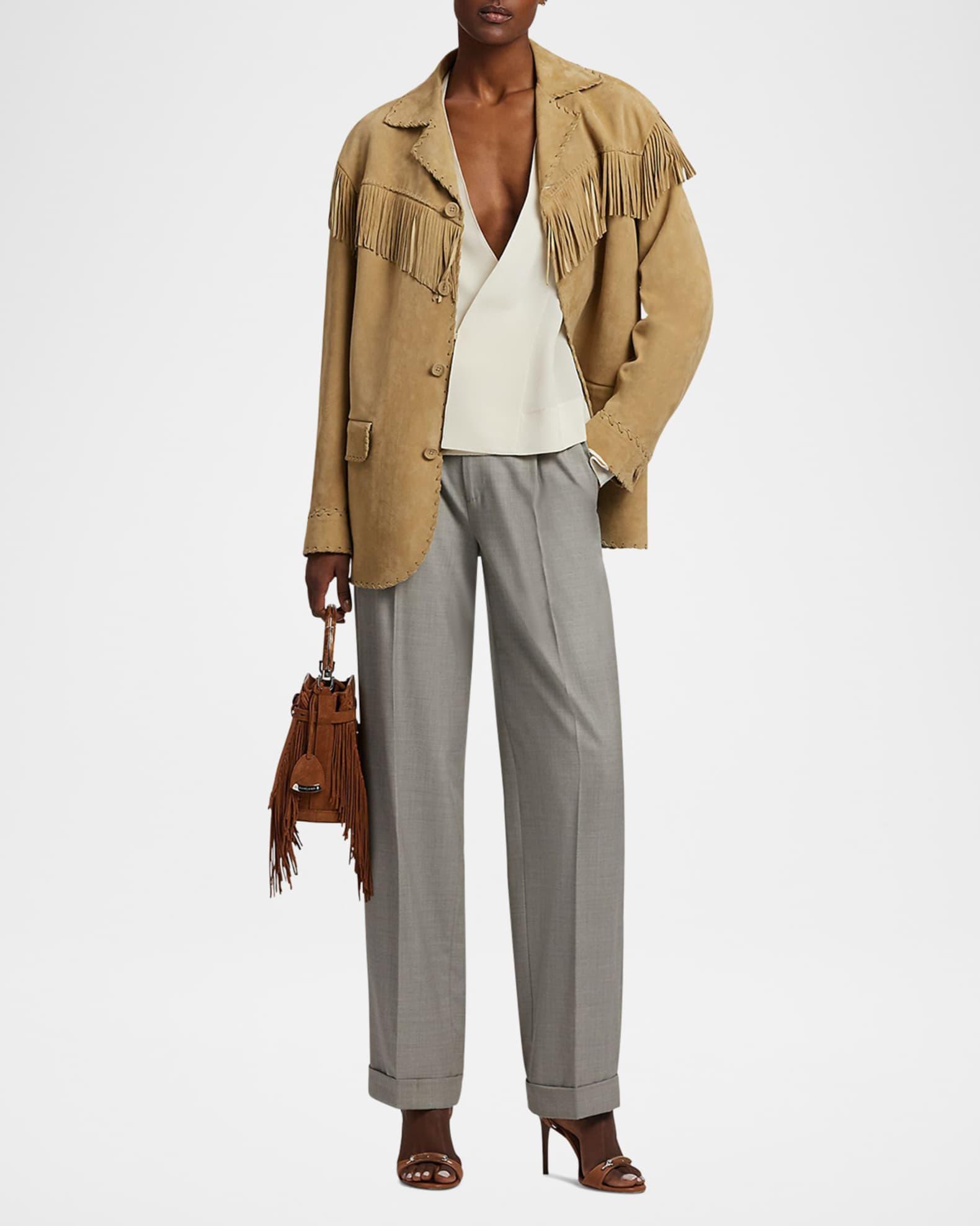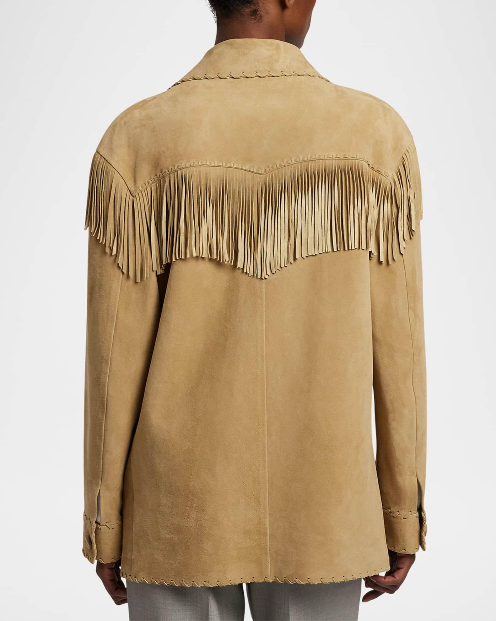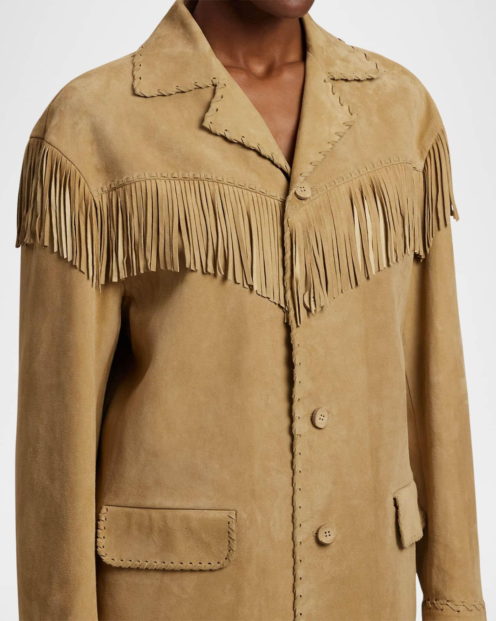 Ryland Fringe-Trim Suede Coat