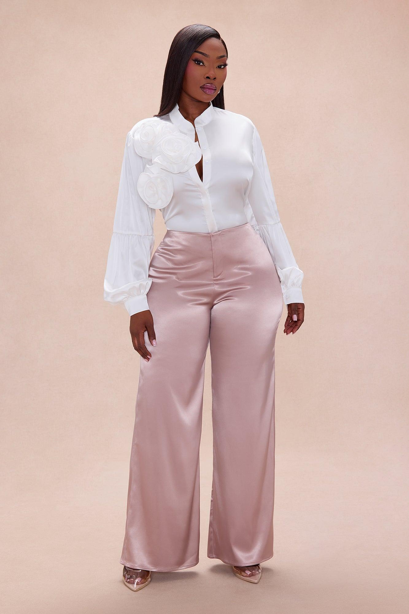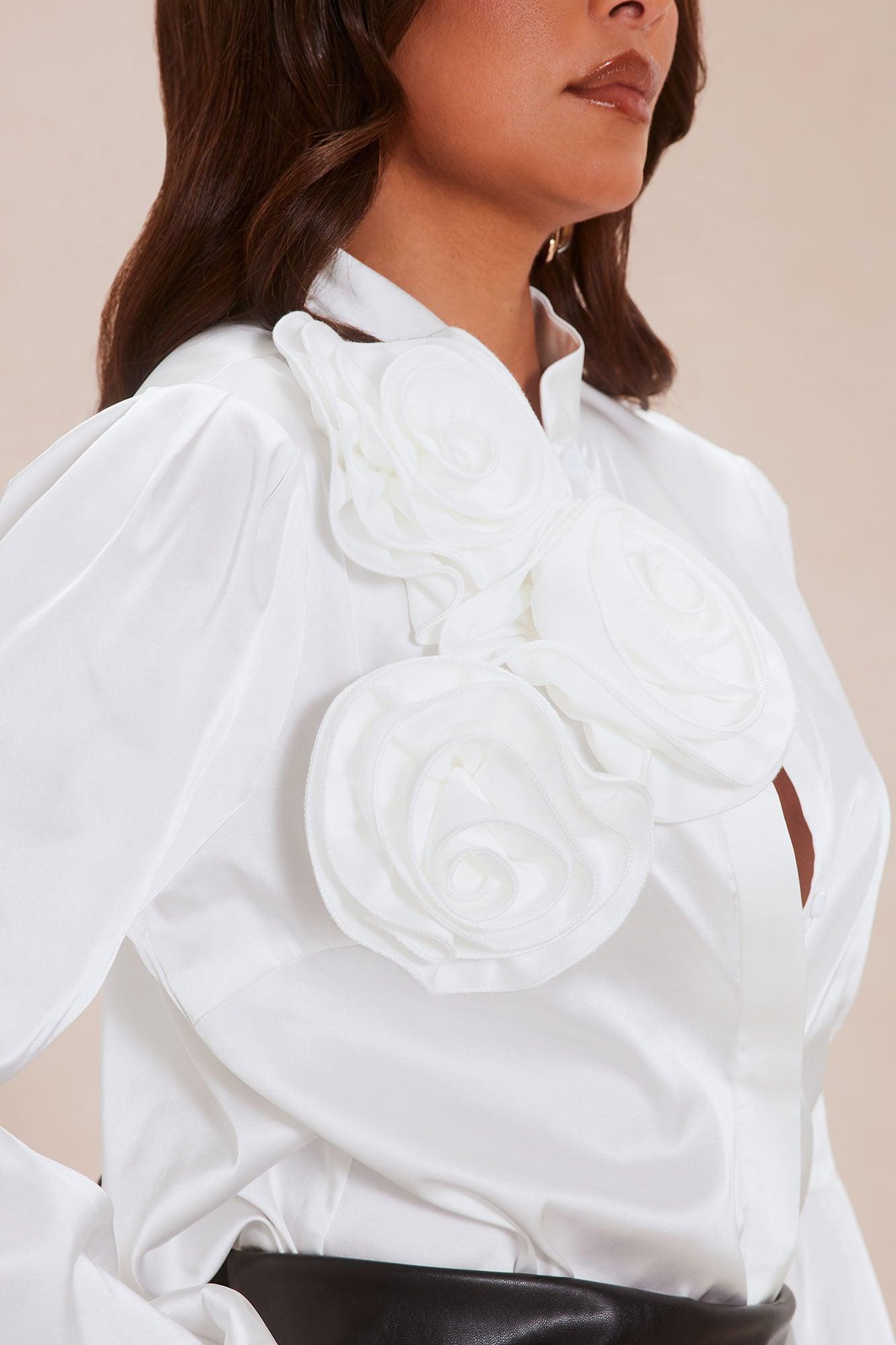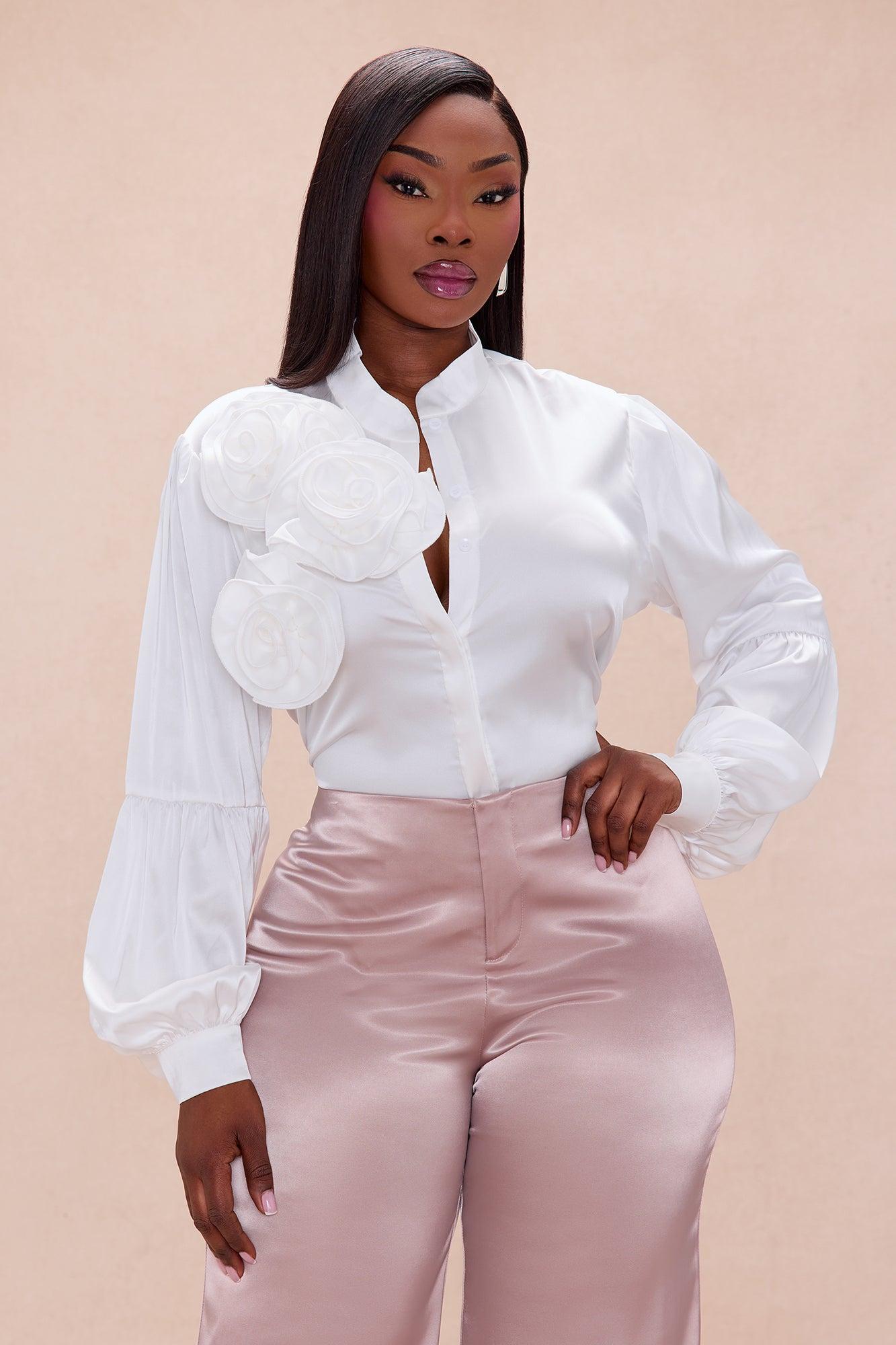Rylee Floral Applique Satin Top - Off White Female