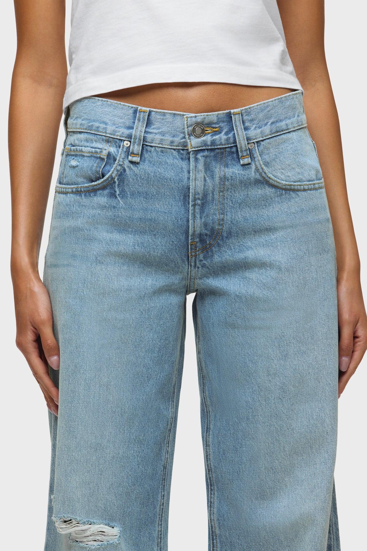 Description The Rylee Low-Rise Loose Jean in Monarch is a low-rise loose fit that is meant to be worn relaxed and dropped. This pair features rigid denim in a vintage-inspired medium-light indigo wash, and it is finished with a 32" inseam, knee destruction and classic five-pocket styling. Product Details Front Rise: 10.5", Leg Opening: 23", Inseam: 32" Fit & Care Content: 100% Cotton Machine wash cold gentle cycle Only non-chlorine bleach when needed Tumble dry low Medium iron if needed