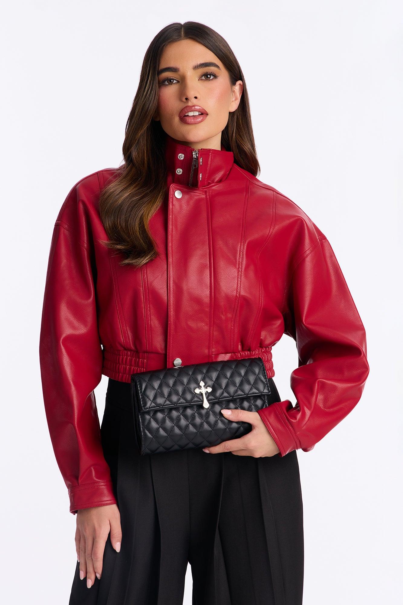 Available In Black. Shoulder Handbag Fold Over Closure Religious Motif Quilted Faux Leather Chain Detail 2 Removable Chains 9"L X 2.5''D X 5''H Imported California Proposition 65WARNING: Cancer and Reproductive Harm - www.P65Warnings.ca.gov.