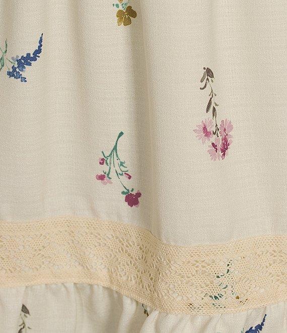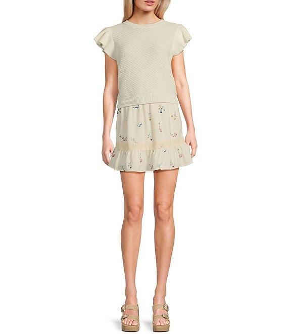 Sadie & Sage Floral Print Ruffle Hem Crochet Lace Trim Mini Skirt