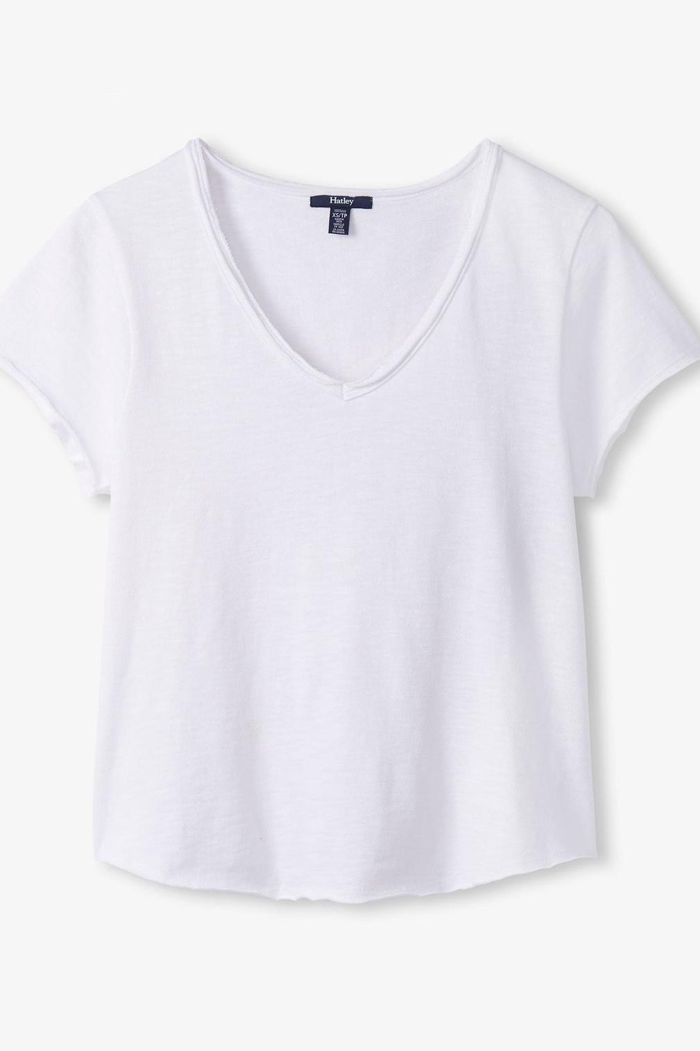 The Sadie V-Neck Tee in White is a timeless essential for effortless styling. Made from breathable cotton, its flattering V-neck design is both classic and versatile. The curbed hemline and trendy raw edges help it stand out. Whether paired with denim for a casual look or tucked into skirts for a polished outfit, it’s a must-have staple. The crisp white shade complements every wardrobe.