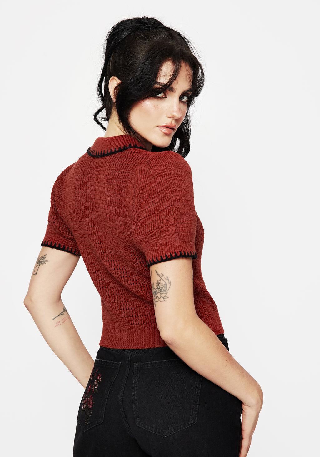 Saffron Floral Embroidered Scallop Collar Pointelle Knit Cardigan
