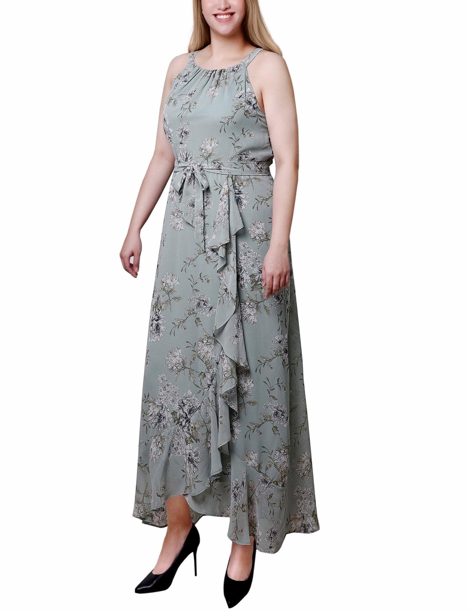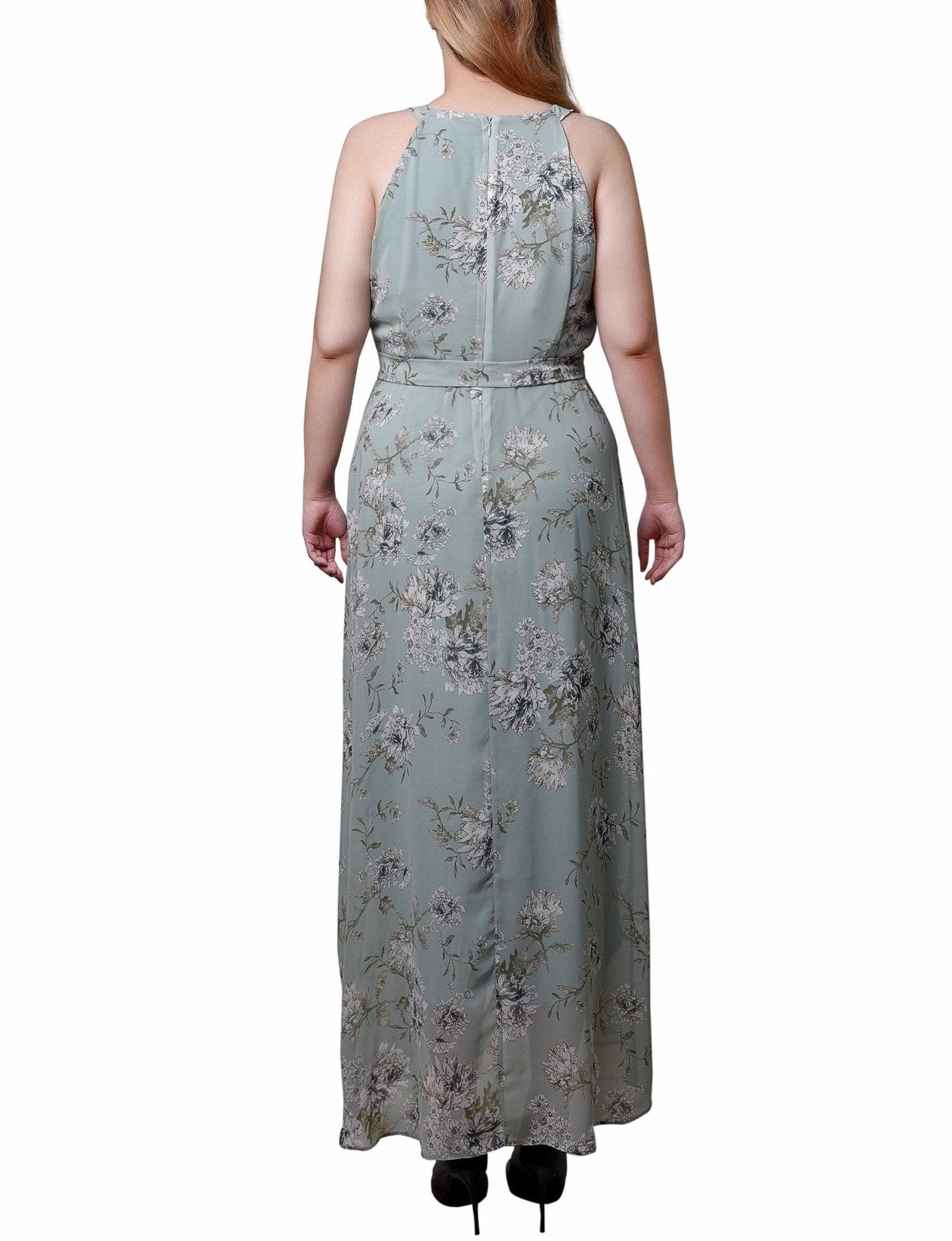 Sage Ivory Floral Halter Front Chiffon Maxi Dress - Petite
