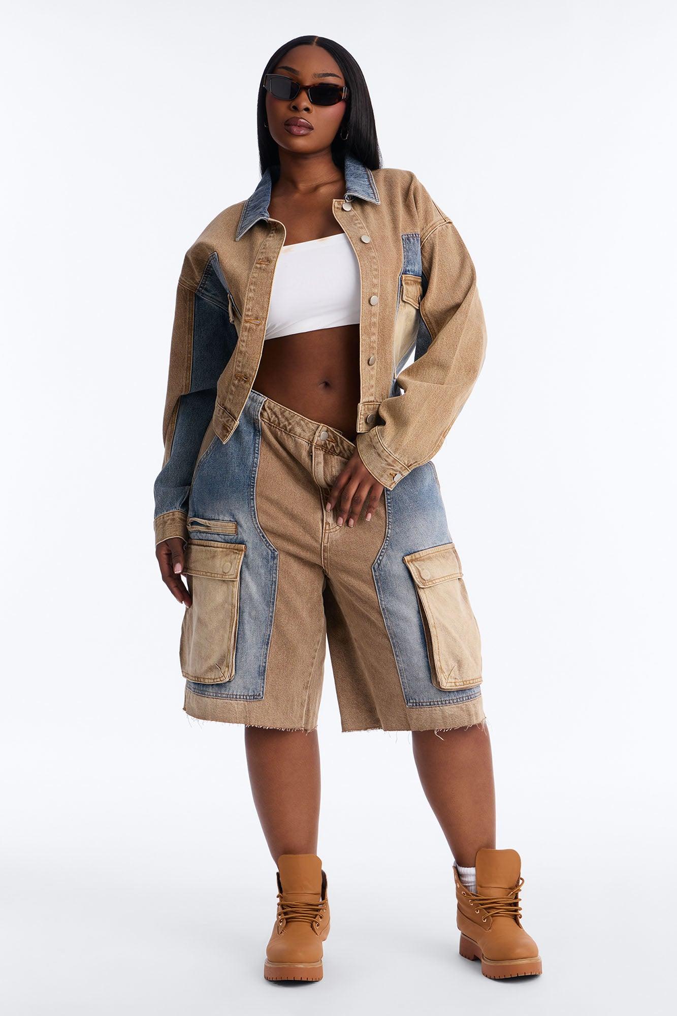 Sahara Cargo Denim Jorts - Tan/Multi
