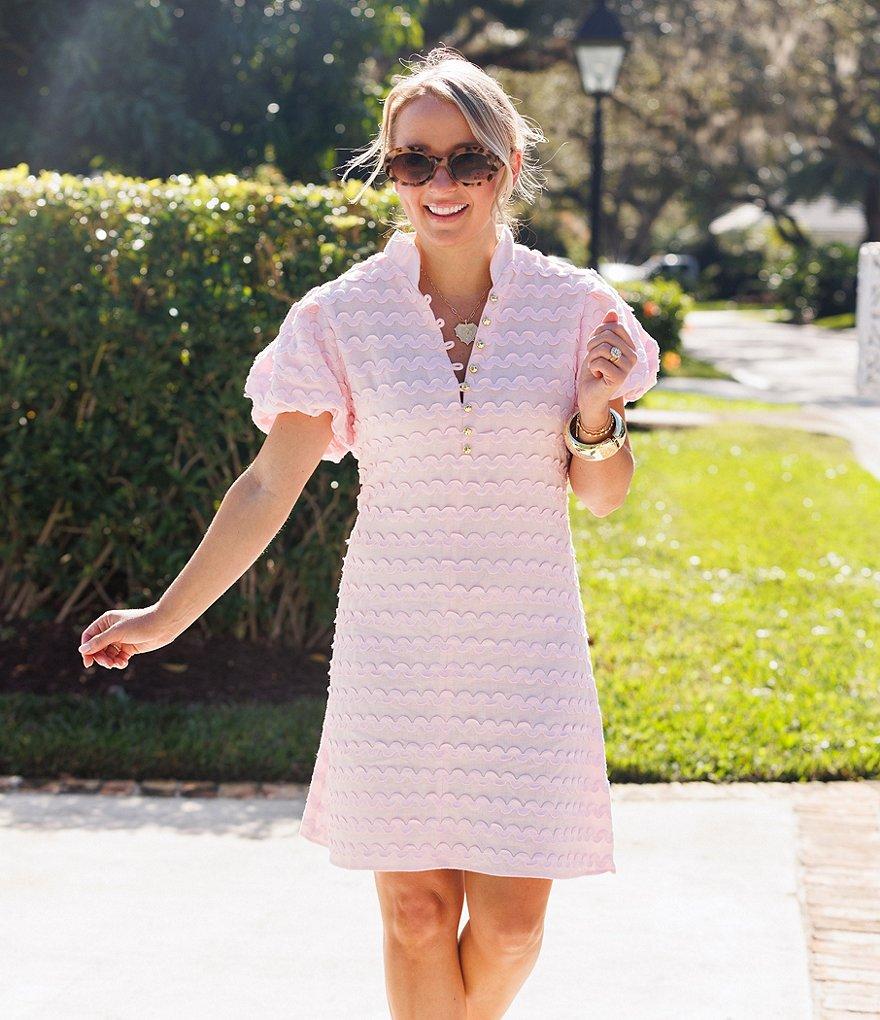 From SAIL to SABLE x Amy Littleson McNitt, this dress features: Woven fabrication Ric rac pattern Button front mandarin collar neckline Short puff sleeves A-line silhouette Straight hem Pullover construction Approx. 34.5" length Linen/viscose Machine wash Imported.