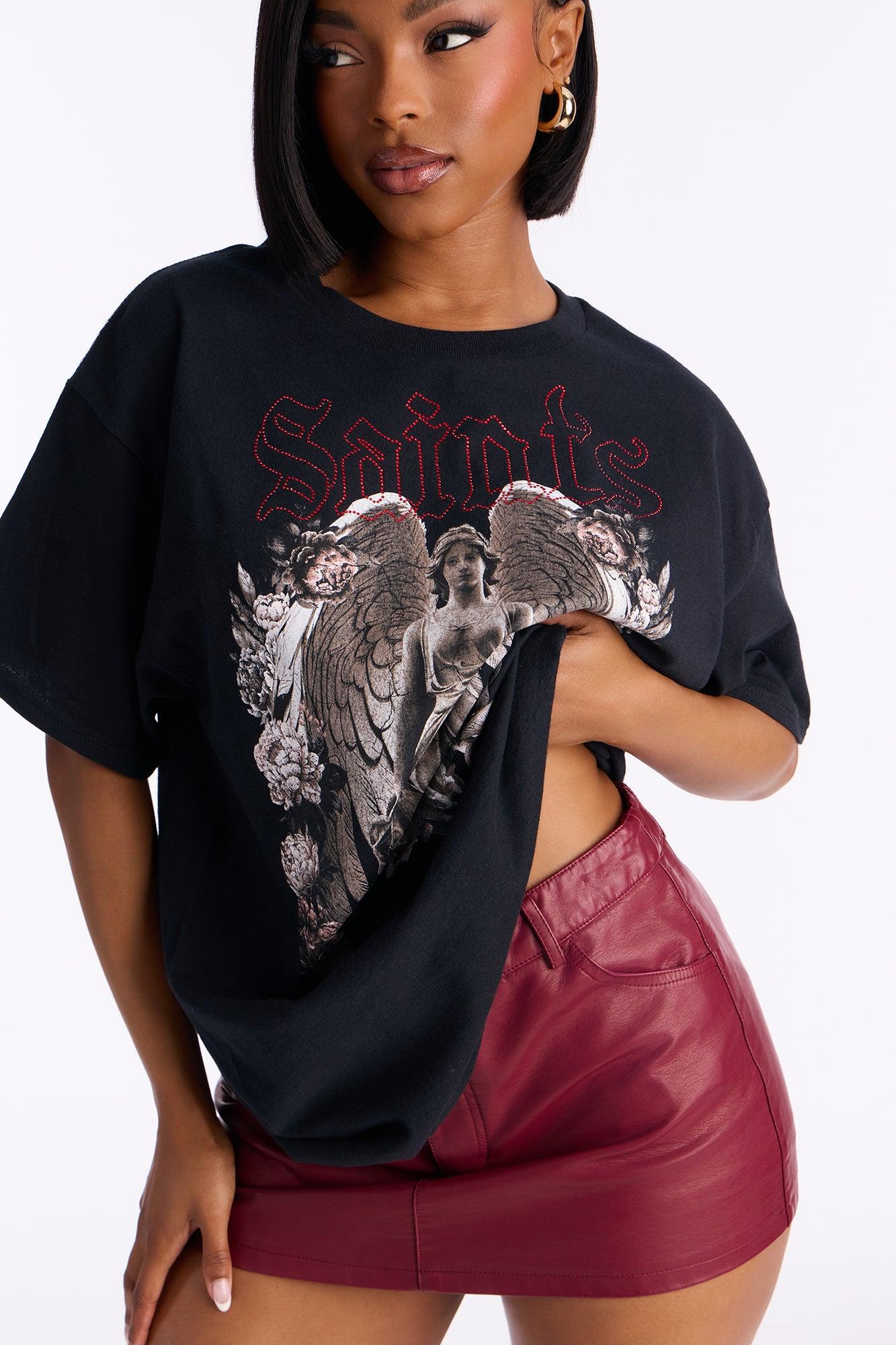 Available In Black. T Shirt Short Sleeve Crew Neck Front Screen Rhinestone Detail Disclaimer: Due To The Printing Process A Difference In Saturation May Occur. Each Garment Is Unique. 100% Cotton Imported