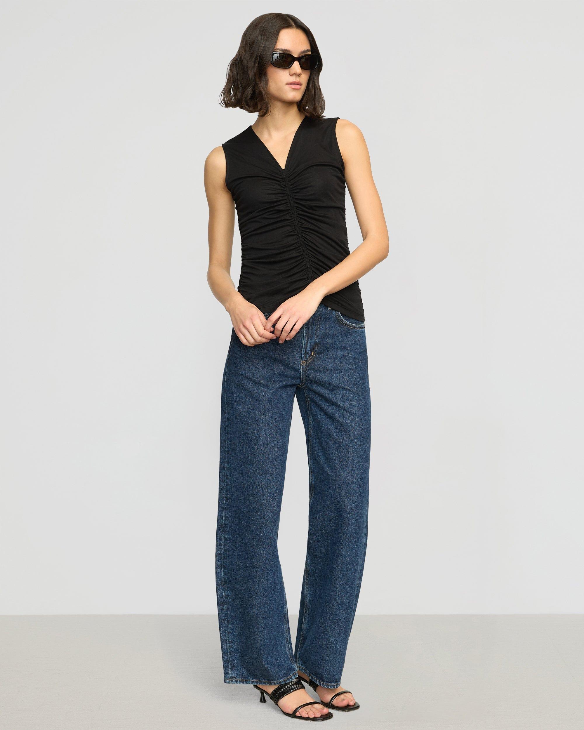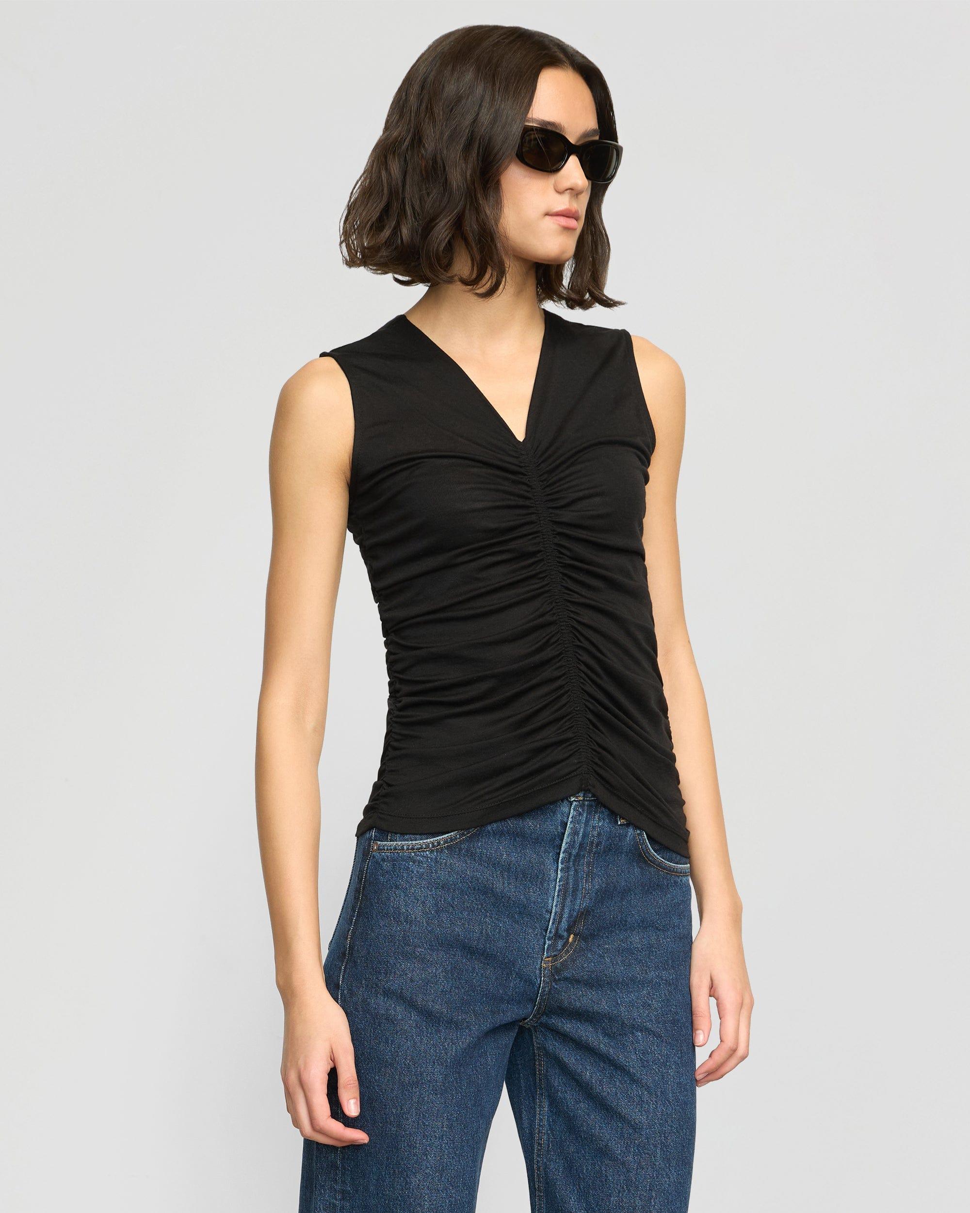 A modern take on the staple tank — Saleha features statement-making ruched details that elevate any look. Perfect for styling with your favorite skirt and heels for a chic night out.