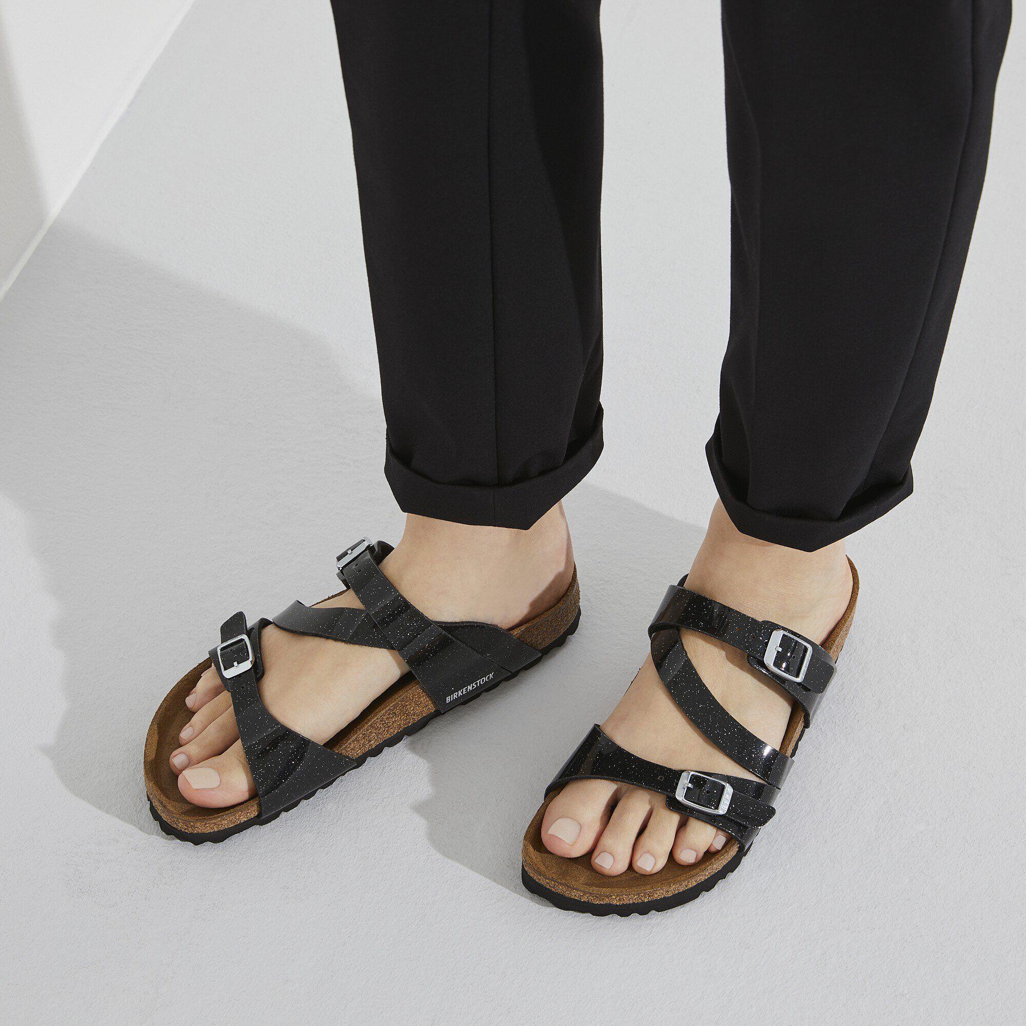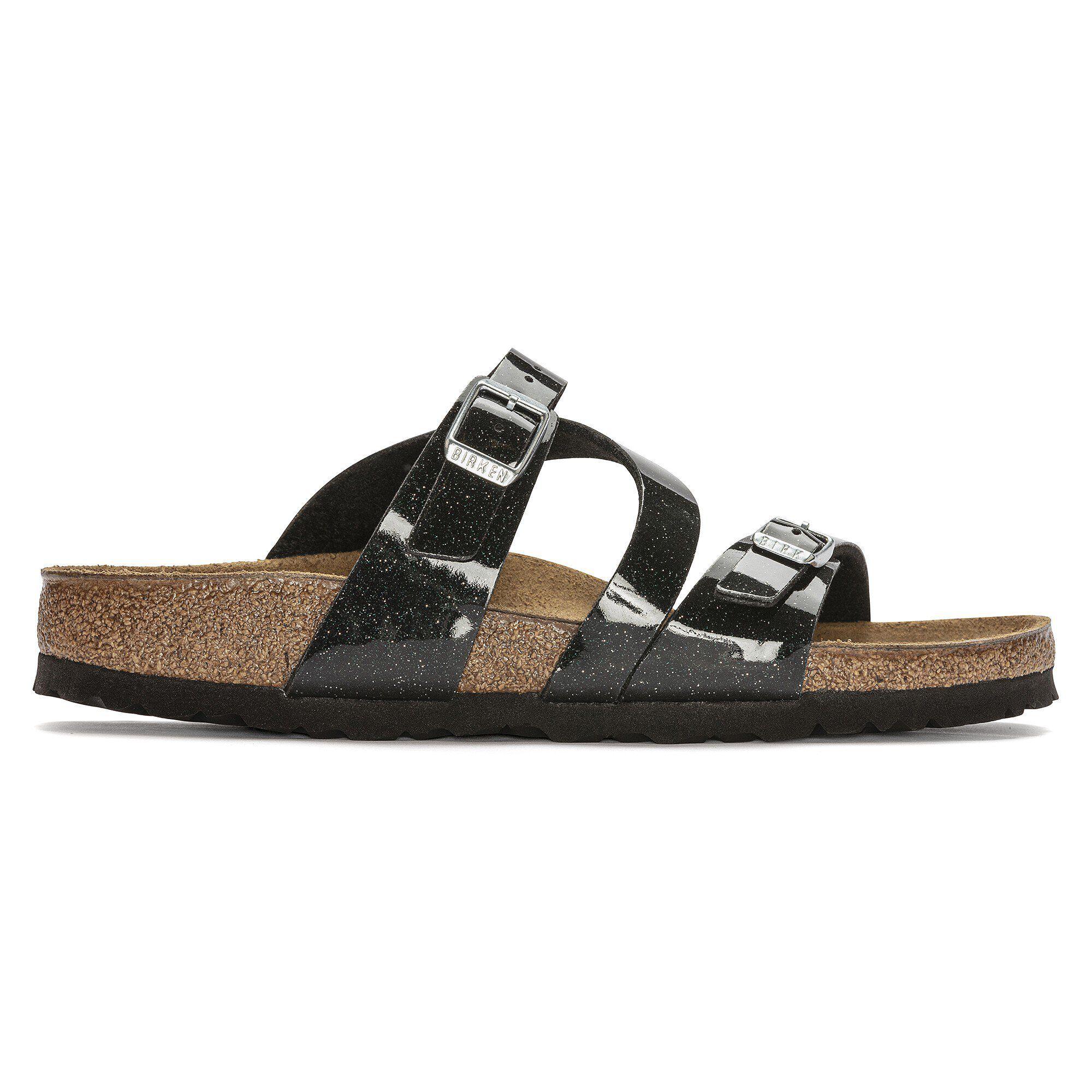 Style, comfort and stars align. A high-shine, patent coating gives the Salina sandal a luxe-looking sheen, with subtle sparkles reflective of starry nights. A style-defining strap curves across the foot, drawing the eye between two adjustable buckle closures. Complete with classic BIRKENSTOCK design elements, like a contoured cork-latex footbed for the ultimate in support.