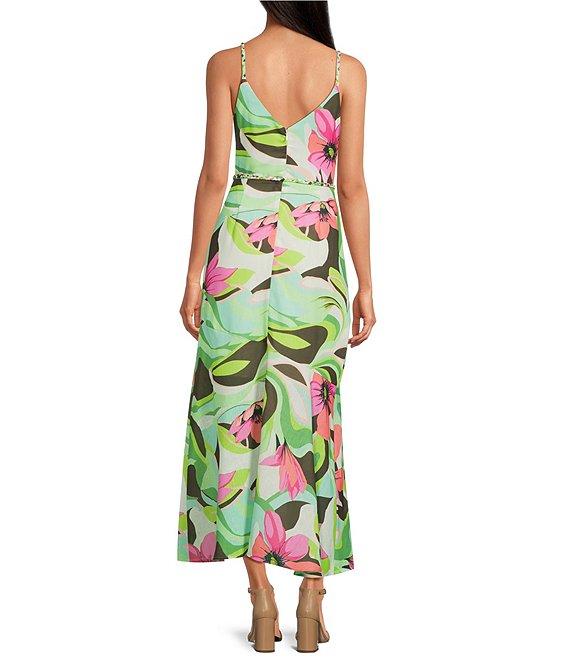 Sam Edelman Sleeveless V-Neck Palm Royal Floral Print Fit And Flare Maxi Dress