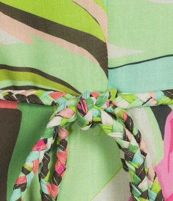 From Sam Edelman, this dress features:V-necklineSleevelessFit and flare silhouetteLinedPalm royal floral printTie beltPullover constructionApprox. 50.5" in lengthPolyesterDry cleanImported.