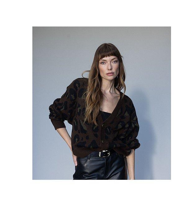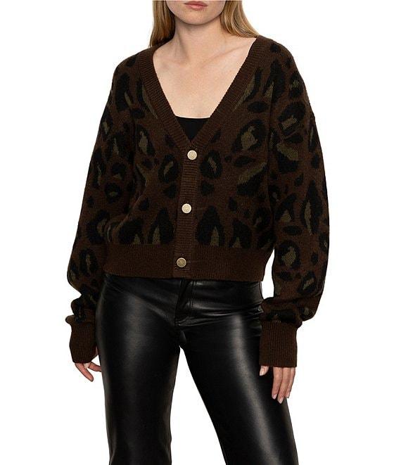 Sanctuary Meow Animal Print Fuzzy V-Neck Long Sleeve Button Front Cardigan