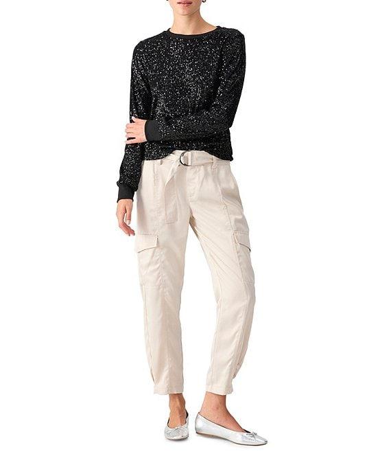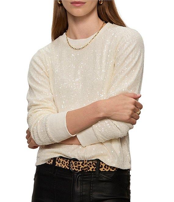 From Sanctuary, this top features: Sequin fabrication Ribbed crew neckline Long sleeves Ribbed cuffs Pull-on construction Approx. 21.5" front; 35" bust; 32" sleeves Polyester/spandex Hand wash Imported.