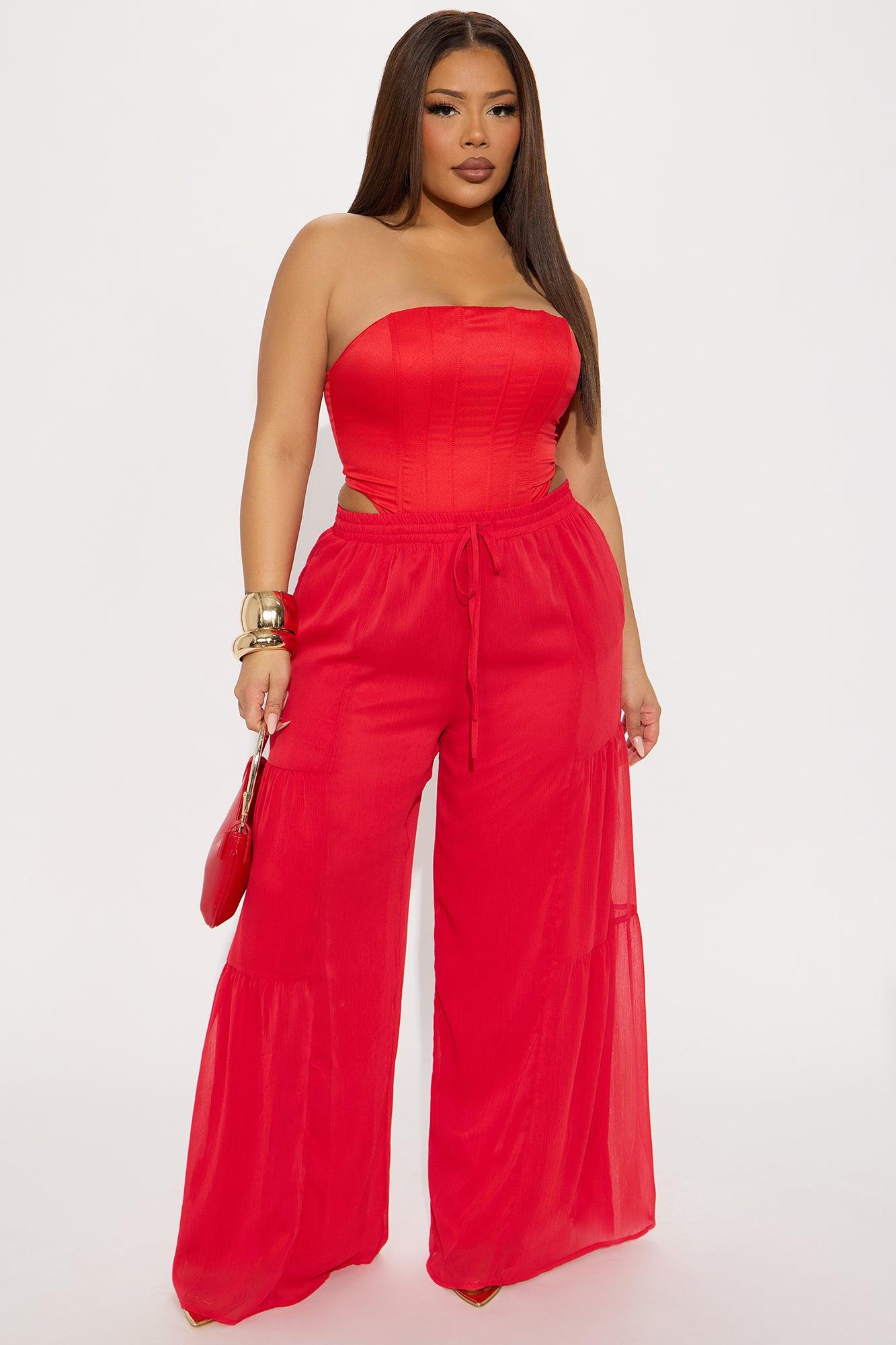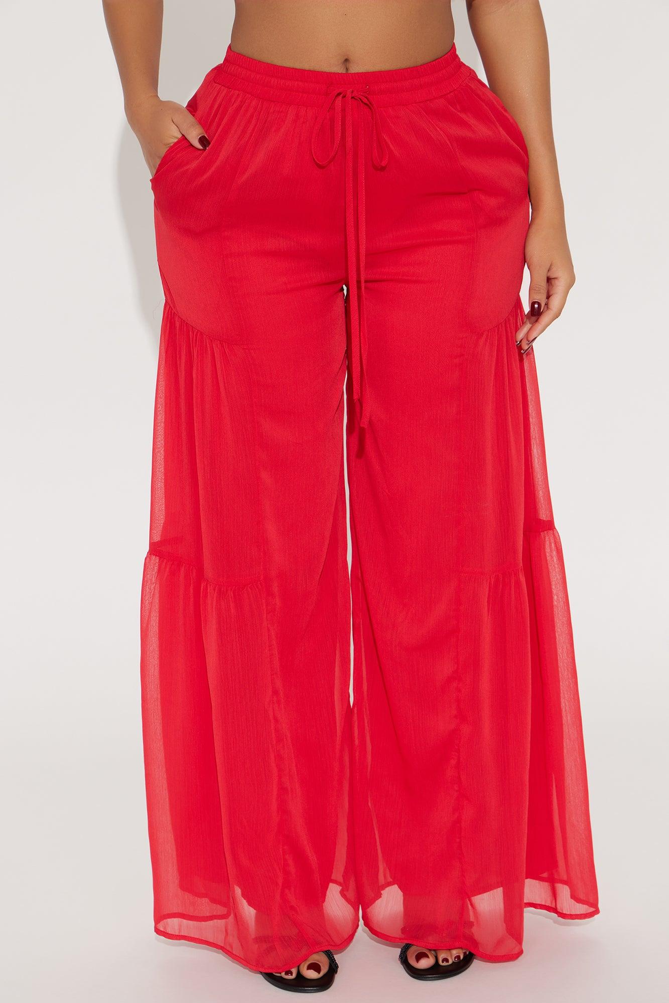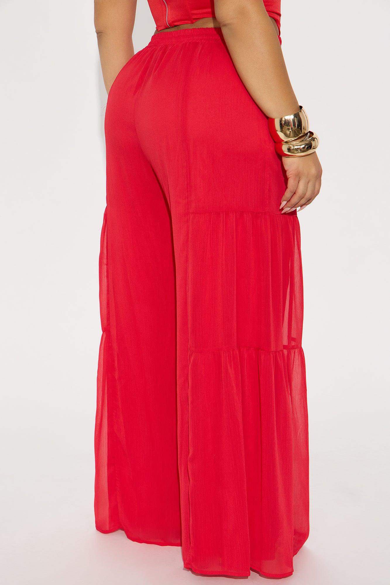 Sandra Chiffon Wide Leg Pant - Red