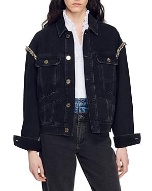 This embellished denim jacket features a loose fit silhouette and a shirt collar. This denim garment was manufactured using an eco-responsible process that reduces water consumption by 95% and significantly limits the use of energy and chemicals. Spread collar Long sleeves Buttoned cuffs Front button closure Chest buttoned flap pockets Waist welt pockets Cotton Lining: Polyester/cotton Dry clean Imported SIZE & FIT About 20 from shoulder to hem Model measurements: 510 tall Model is wearing a US size 4. Lsd Rtw - Sandro > Sandro > Saks Fifth Avenue > Barneys. Sandro. Color: Black. Size: 6.