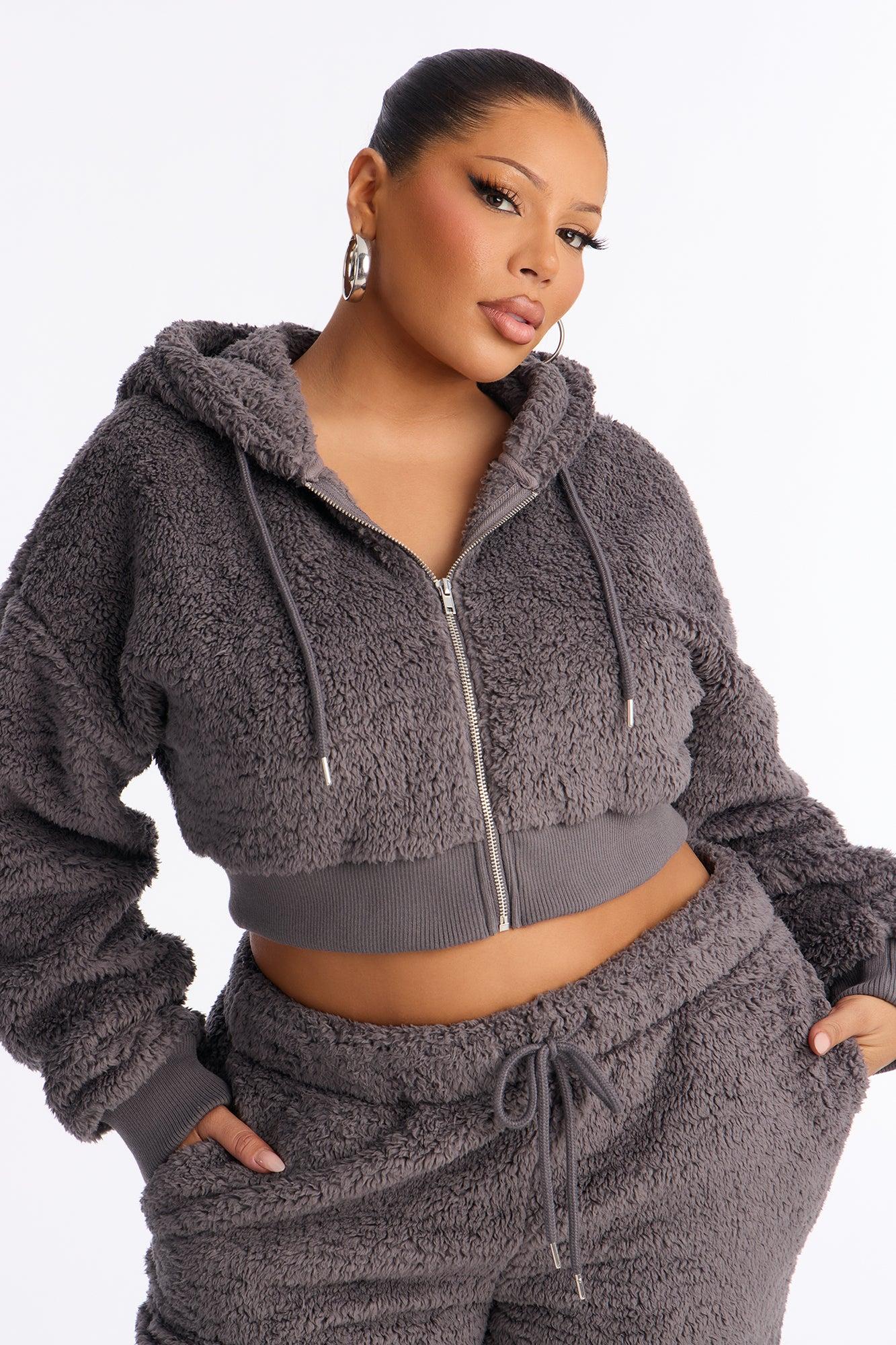 Sarah Sherpa Zip Up Sweatshirt - Grey Female
