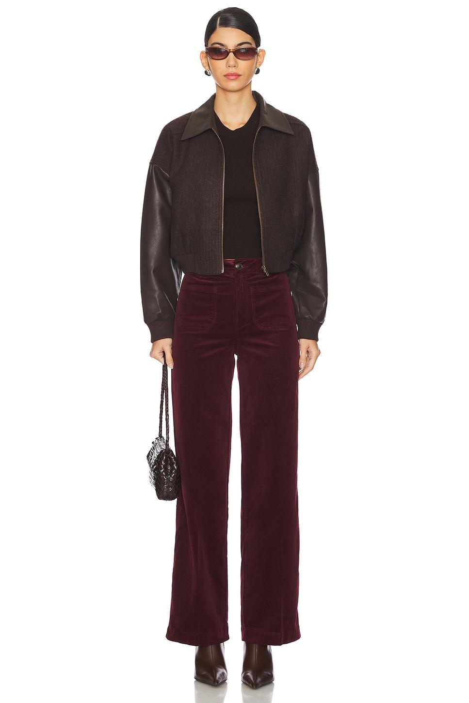 68% cotton, 30% modal, 2% spandex. Made in China. Machine wash. Fly zip with button closure. Front slip pockets and back faux back pockets. Midweight velvet fabric. 18" at the knee and 18" at the leg opening. Revolve Style No. PAIG-WP117. Manufacturer Style No. 1B88H84-B881.