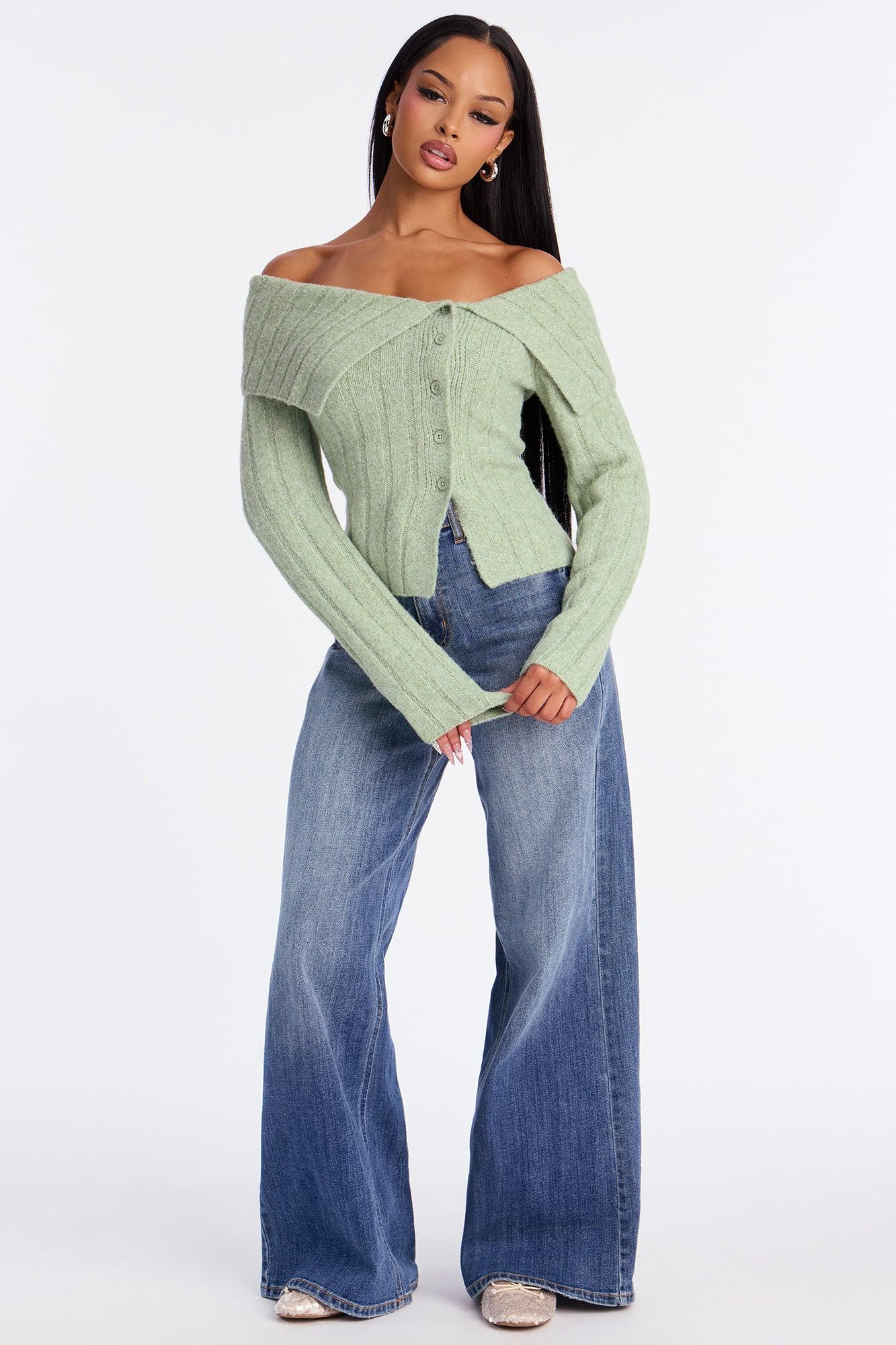 Sassy Soul Off Shoulder Sweater Top - Sage Female