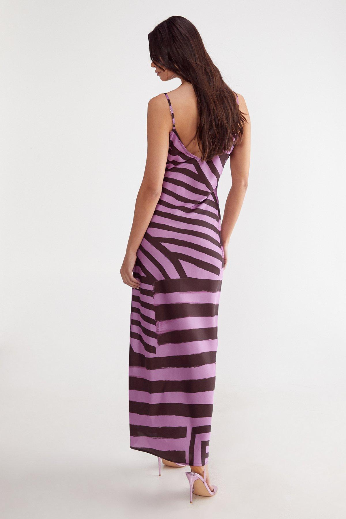 Satin Abstract Stripe Maxi Slip Dress