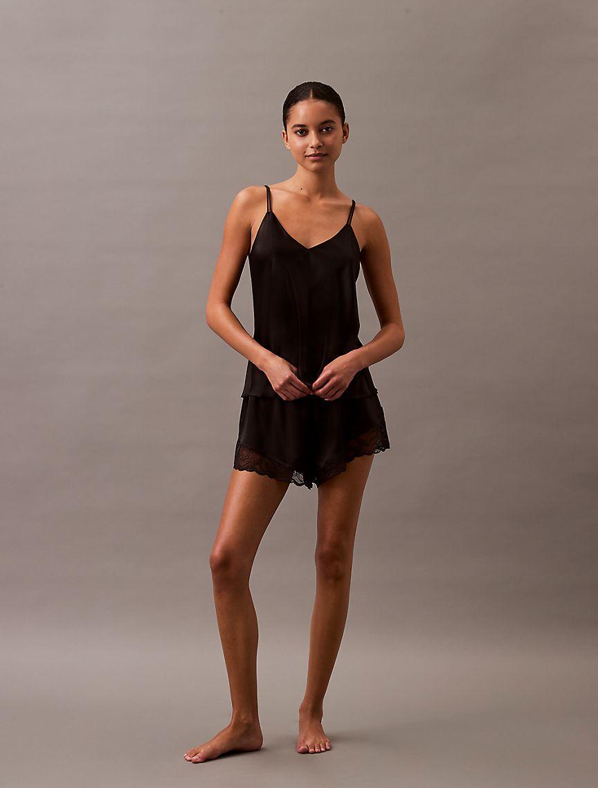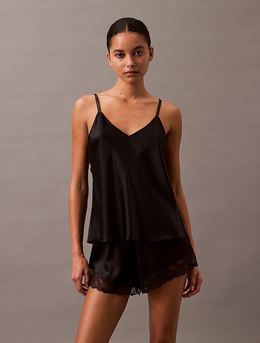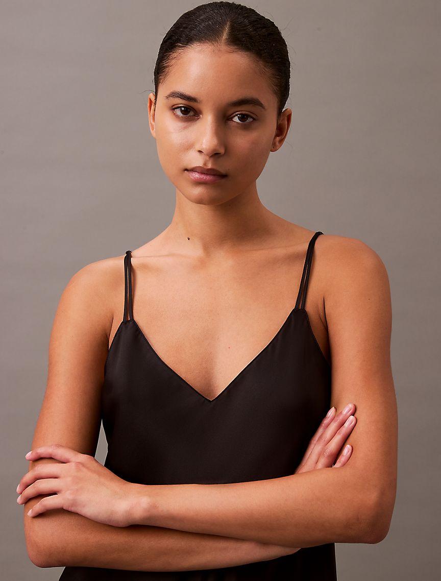 Your moment of sensuality. Lustrous in silky-soft satin, this Calvin Klein silhouette features a minimalist, solid design.