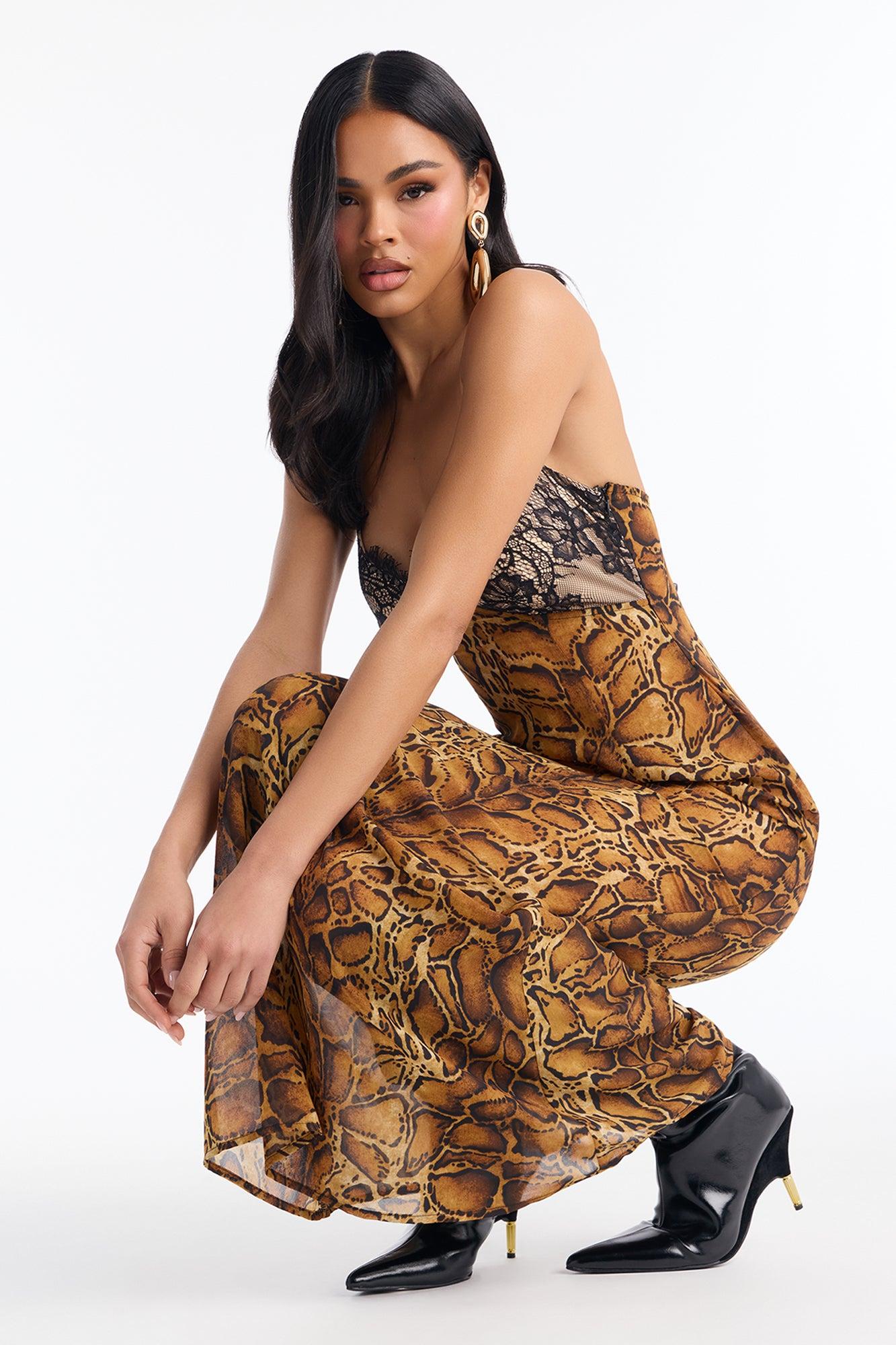 Savage Siren Chiffon Maxi Dress - Brown/combo Female