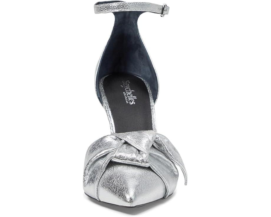 Look fabulous as you dance the night away wearing the Seychelles® First Dance. Crafted from leather upper, lining and insole, this pair of sandals feature cushioned footbed, pointed toe, sexy d'Orsay heels, bow detailing on the vamp, and ankle strap buckled closure.