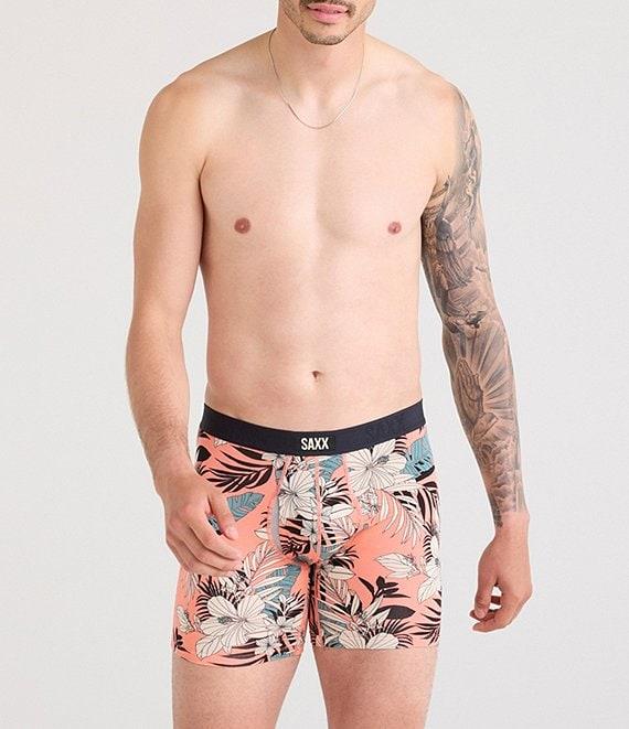 From SAXX, these boxer briefs feature: Slim fit Solid waistband with SAXX logo detail No-RideUp Leg™ Wicking tech innovation built into the BallPark Pouch® Stop Drop Technology™ Flat Out Seams® Three-D Fit® Super-soft, EcoVero™ lightweight four-way stretch fabric that's naturally breathable and odor resistant 6" inseam Viscose/elastane Machine wash/tumble dry Imported.