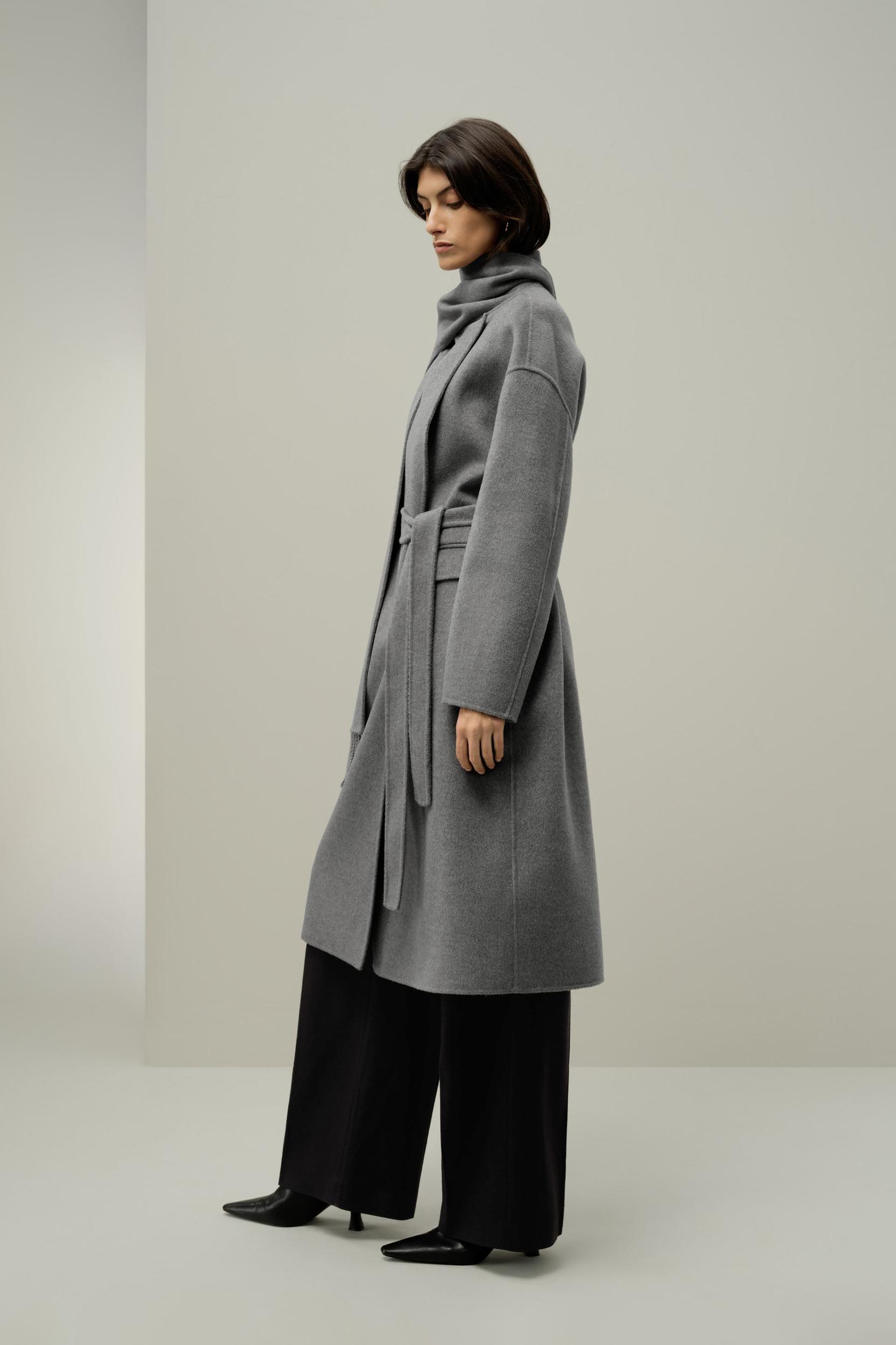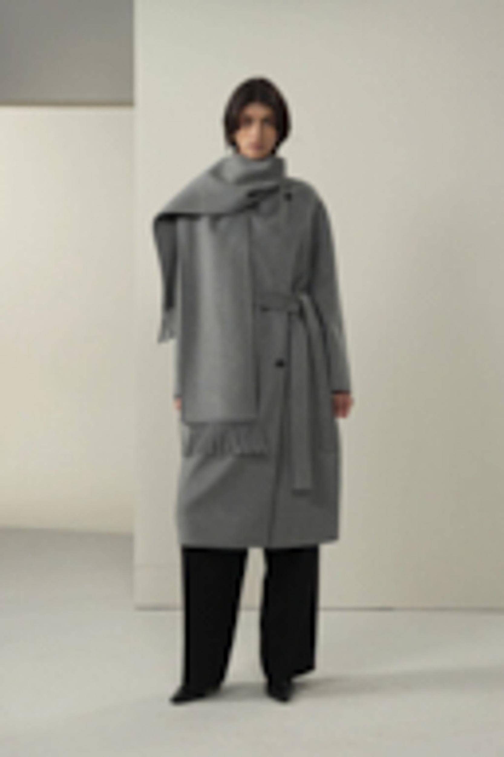 Scarf-Collar Wool Blend Coat