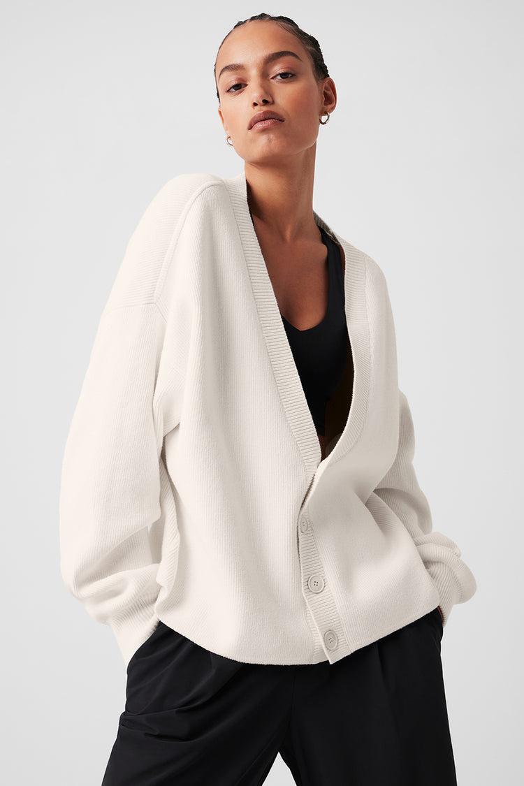 A classic piece you’ll wear constantly, the Scholar is knit from a soft, heavyweight cotton blend with just-right drape. It has an oversized fit, a four-button front, dropped shoulders and cozy ribbed cuffs. Wear it as a throw-on-and-go layer with your favorite workout sets, or style it with trousers and heeled boots for a dressed-up dinner date.