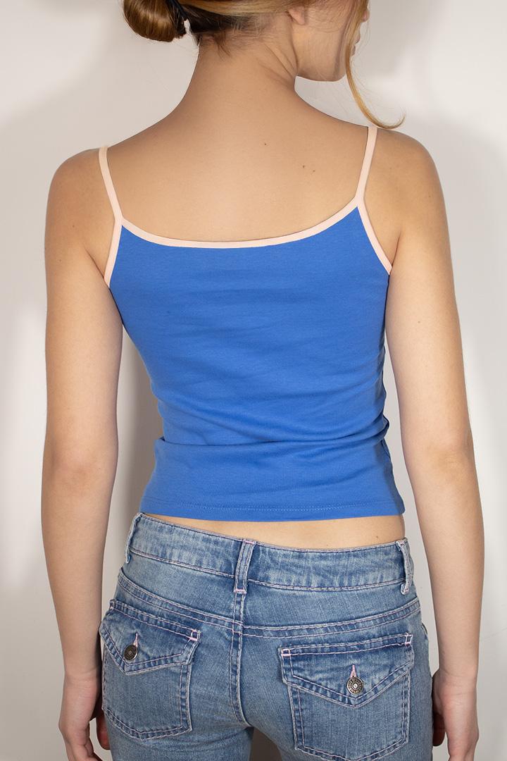 Scoop neckline top, sleeveless, short length, slim fit.