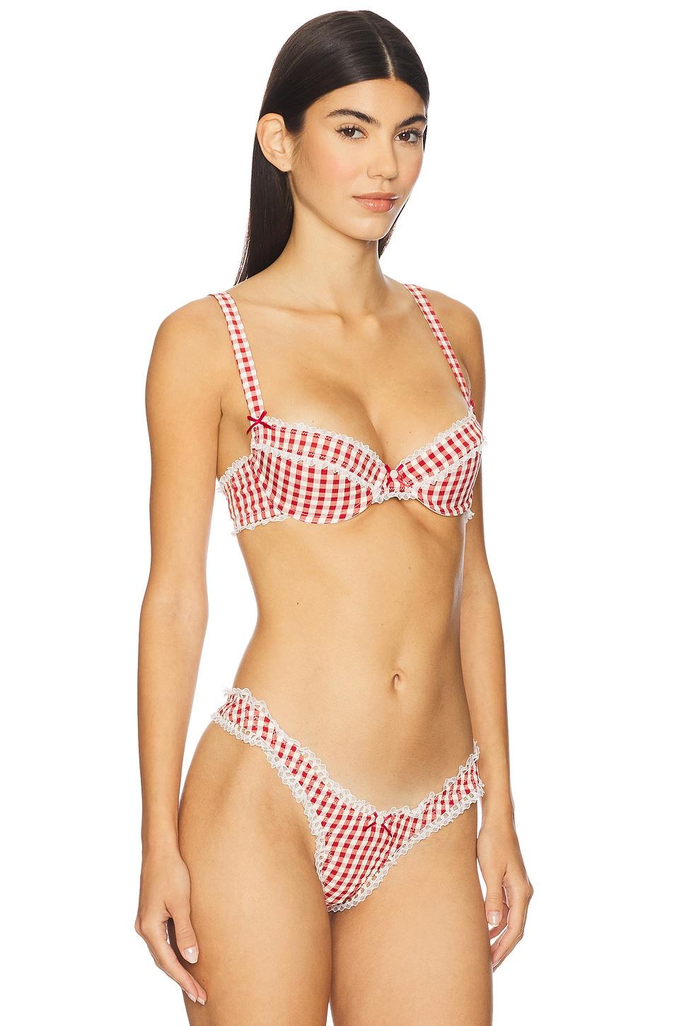 Self: 98% polyester, 2% elastaneLining: 100% polyester. Hand wash. Underwire cups. Back hook and bar closure. Adjustable shoulder straps. Scalloped lace trim with bow accents. Lightweight seersucker fabric. Item not sold as a set. Made in China. Revolve Style No. FORL-WI493. Manufacturer Style No. SKBR2095-SU25.