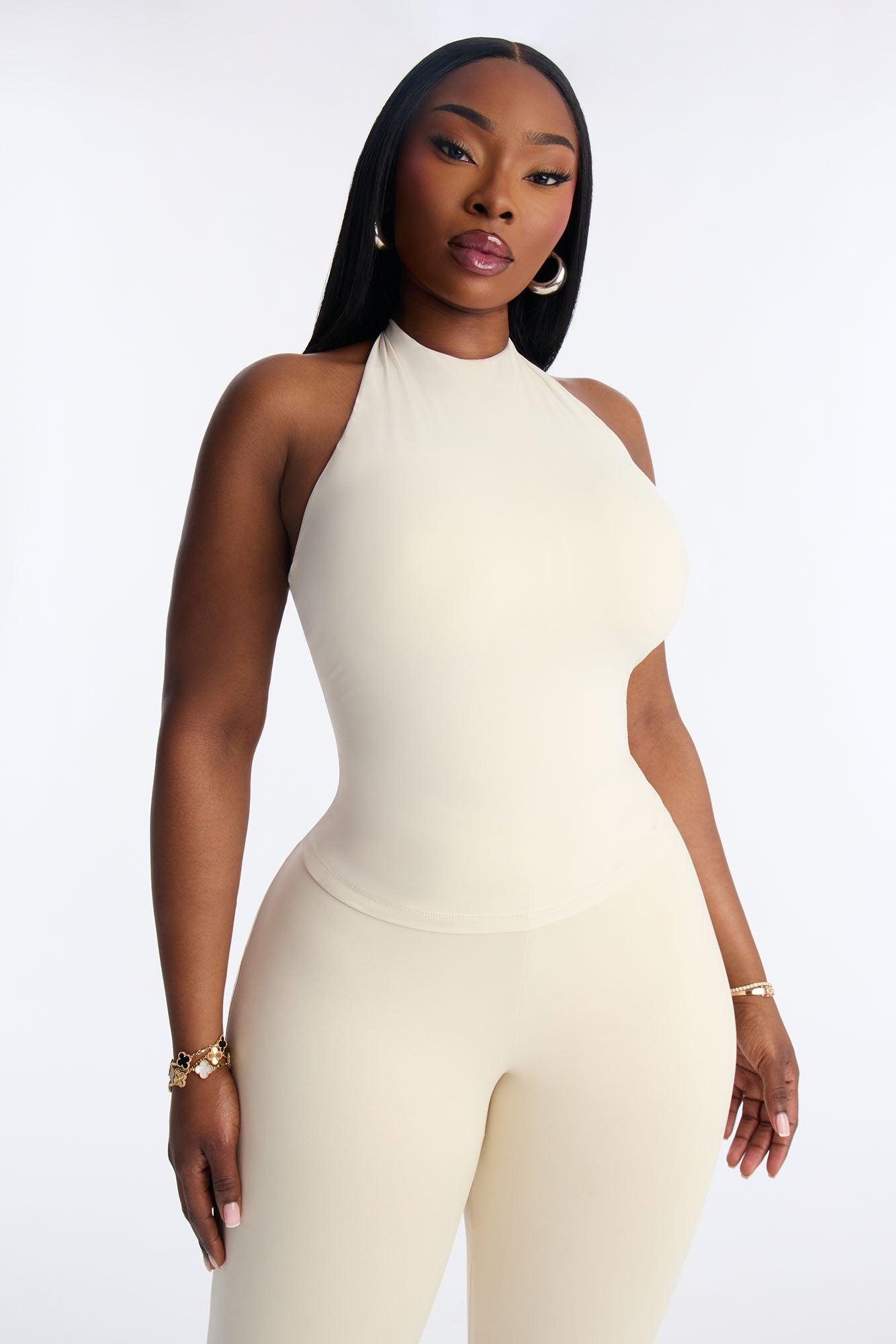 Available In Black And Bone. Second Skin Halter Top High Neck Sleeveless Backless Buttery Soft Double Lined Stretch Shell: 75% Nylon 25% Spandex Lining1: 75% Nylon 25% Spandex Lining2: 92% Nylon 8% Spandex Imported