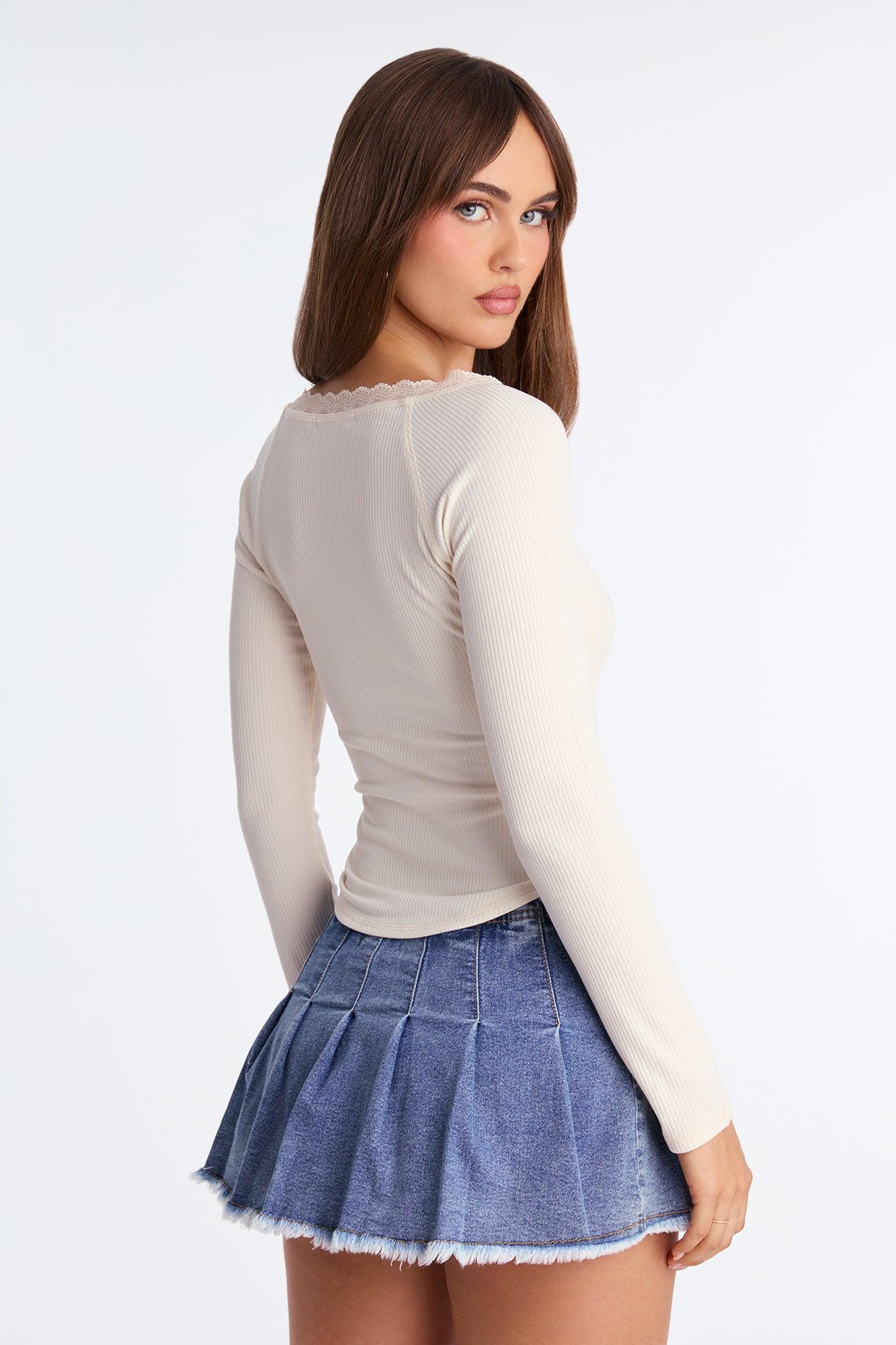 Selena Lace Trim Long Sleeve Top - Cream Female