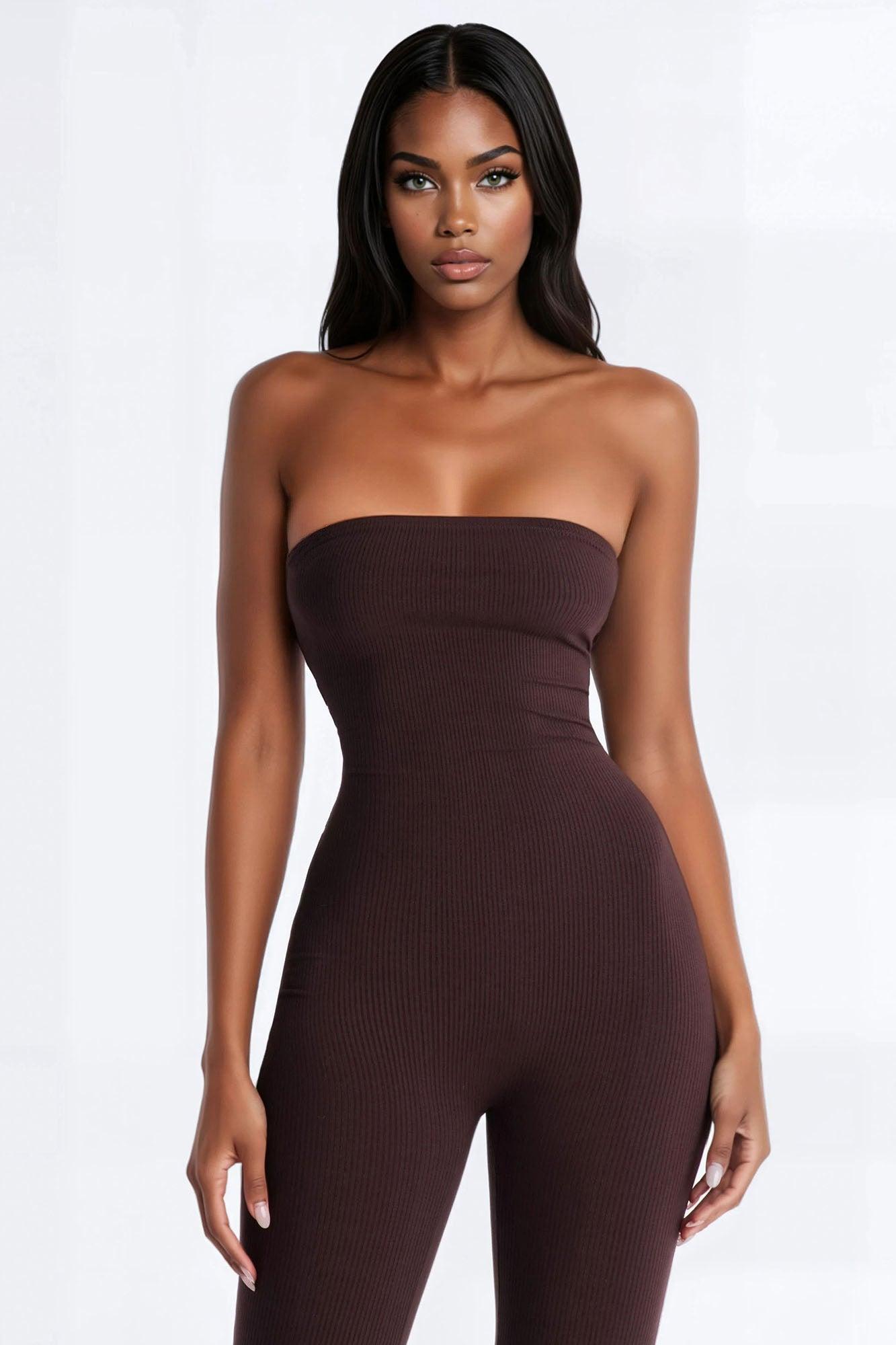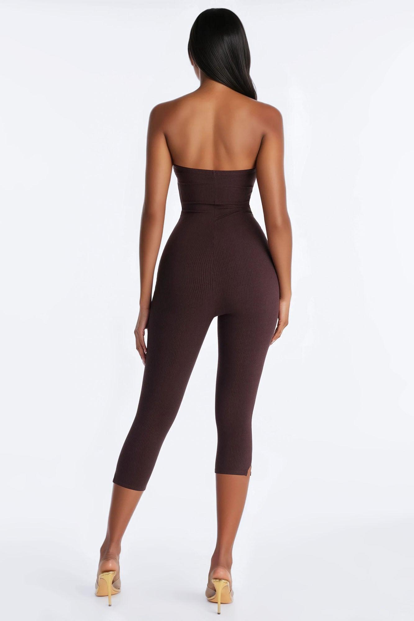 Selena Strapless Snatched Capri Jumpsuit - Chocolate Female