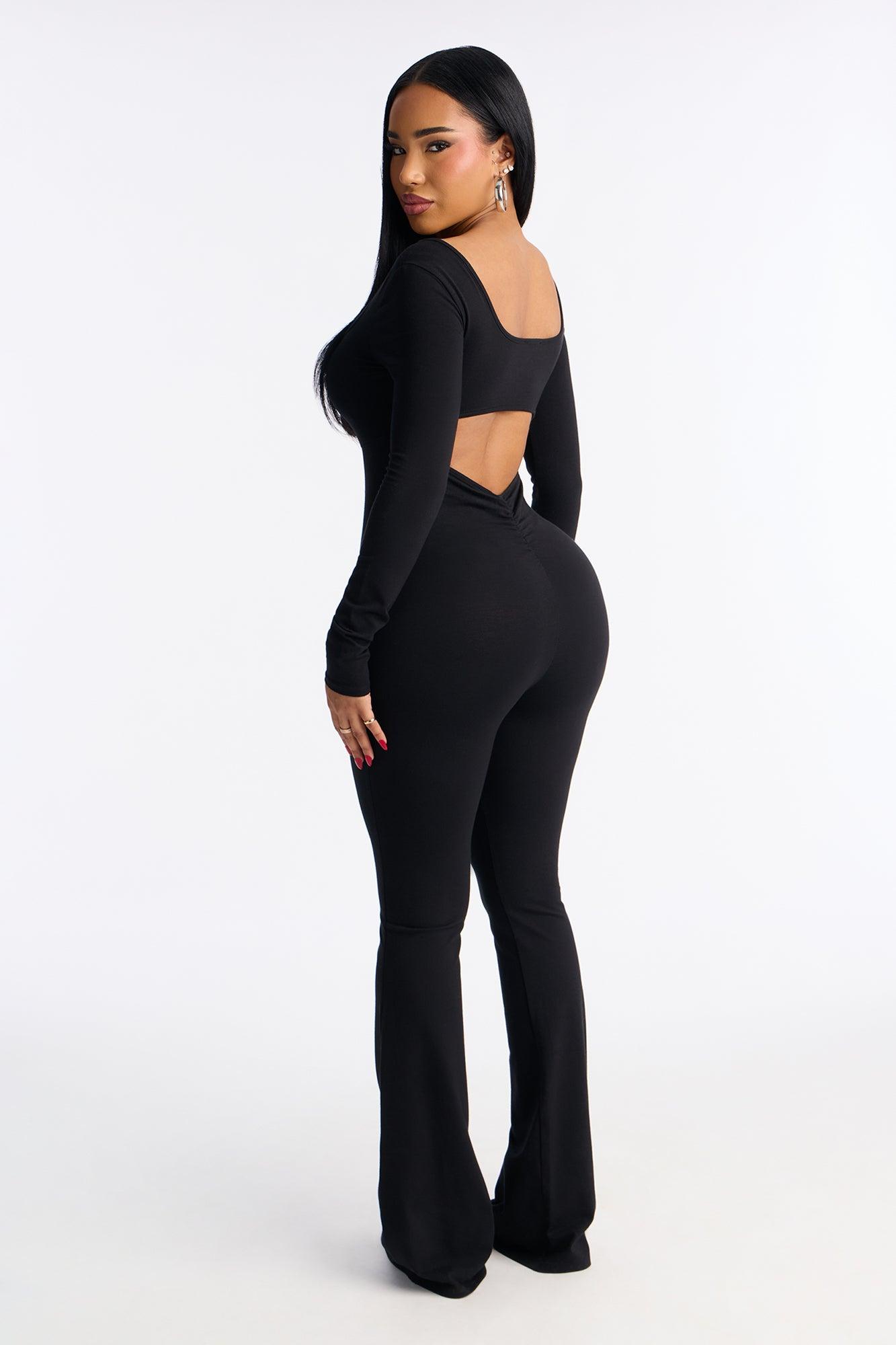 Selina Long Sleeve Flare Leg Jumpsuit - Black Female