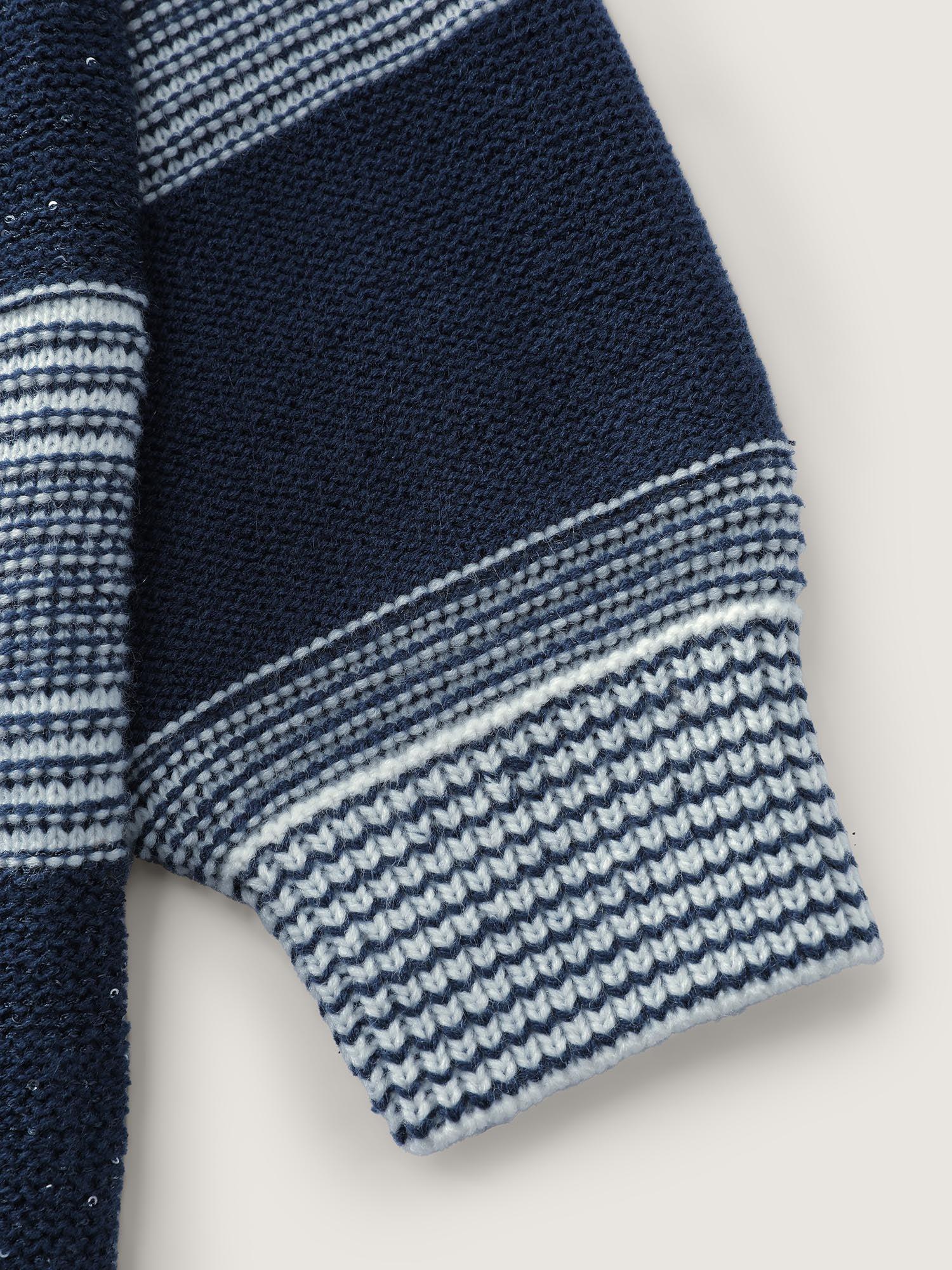 Sequin Yarn Color Stripe Knit Cardigan Female