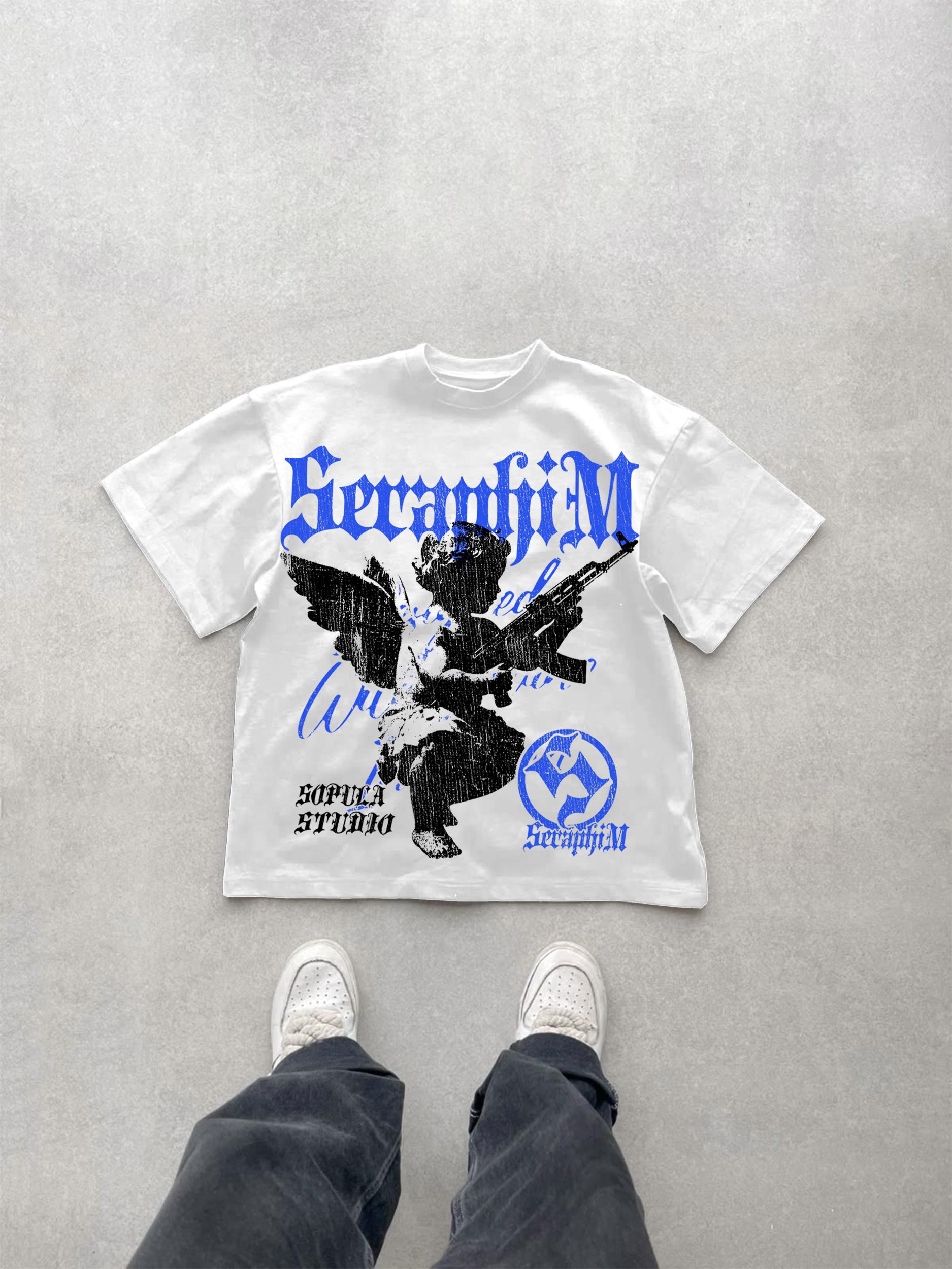 SPU: CP-234284-WJY Fabric: 100% Cotton Fabric Weight: 180g Pattern: Seraphim Graphic Process: Printed Gender: Women,Men Season: Summer Size Range: S-3XL Color: Black,White,Blue Print Position: Front