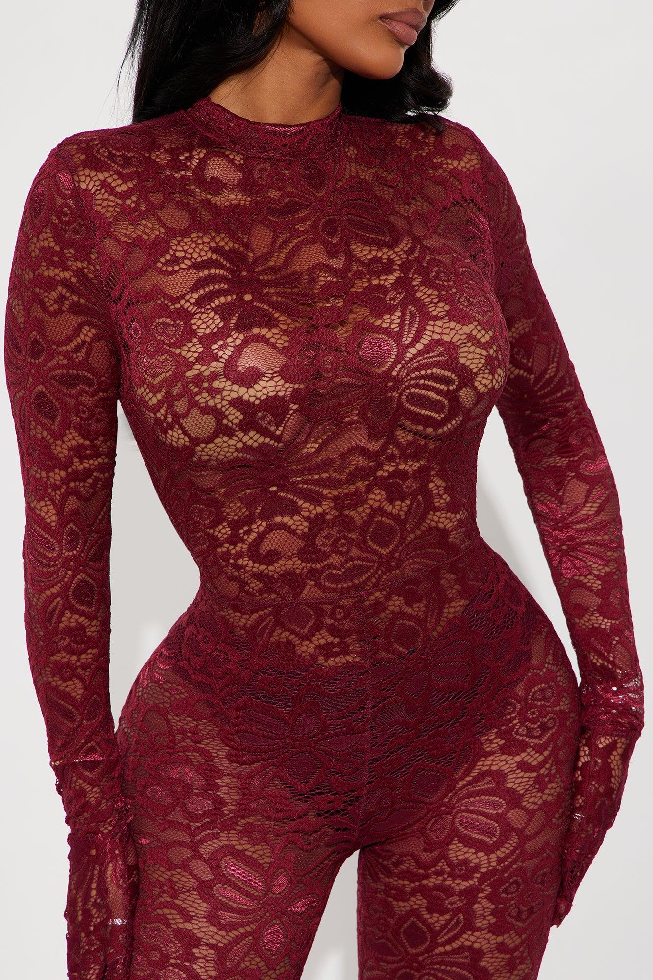 Never Ending Love Lace Jumpsuit - Burgundy Female