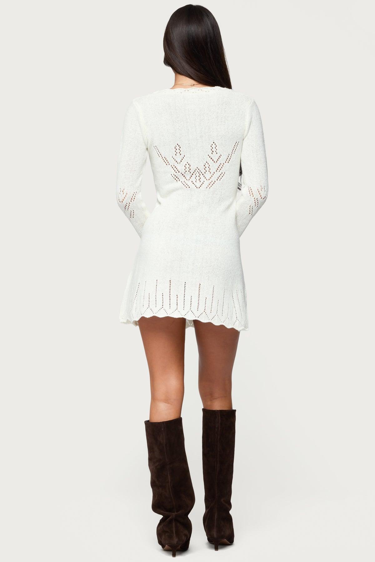 Mini dress Long sleeves String tie detailing Scalloped trim Pointelle knit fabric Acrylic Model wears size S Model height is 5'8 Item care: Machine wash at maximum 30ºC, do not bleach, do not tumble dry, iron at a maximum of 110ºC, do not dry clean