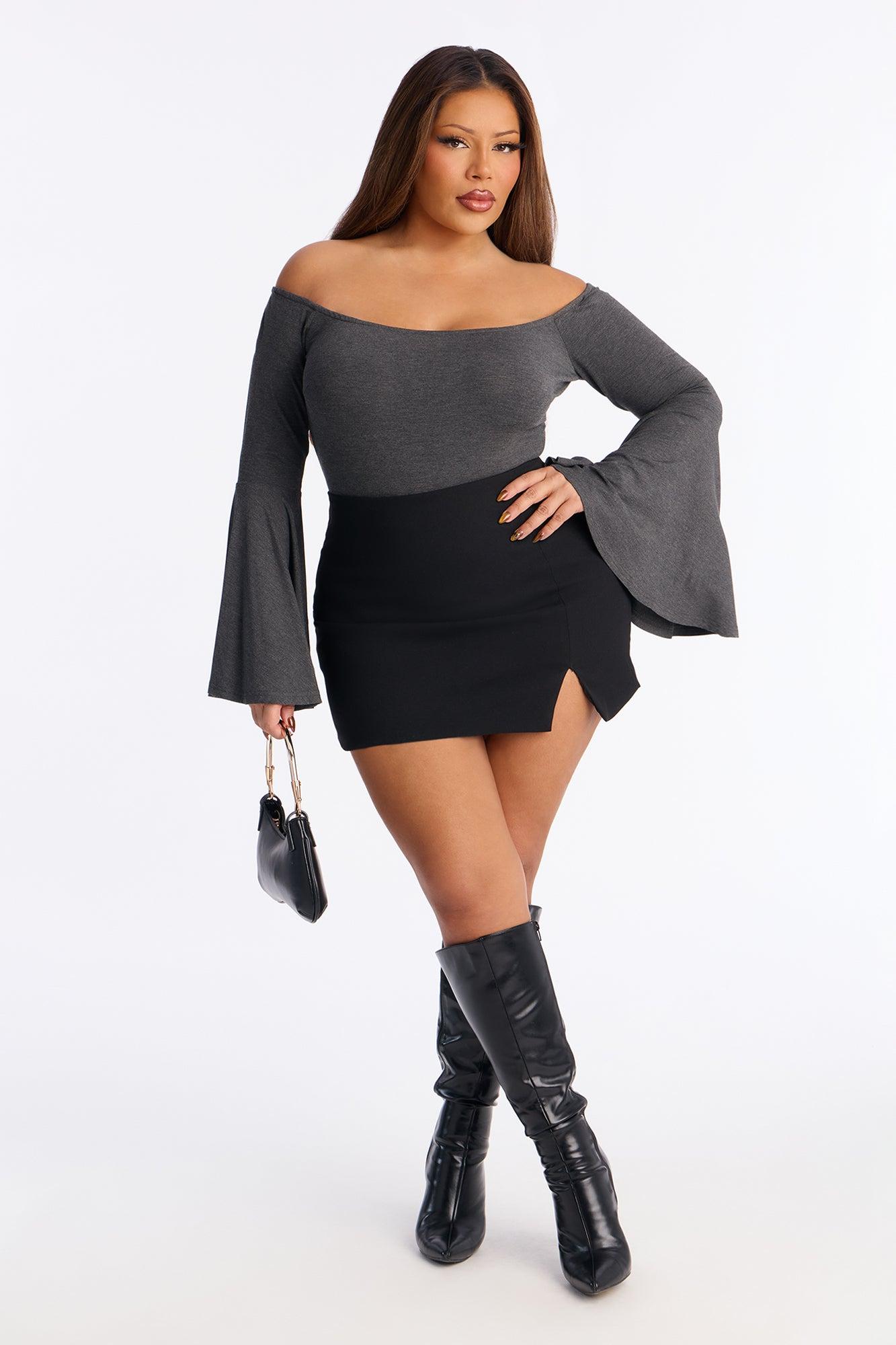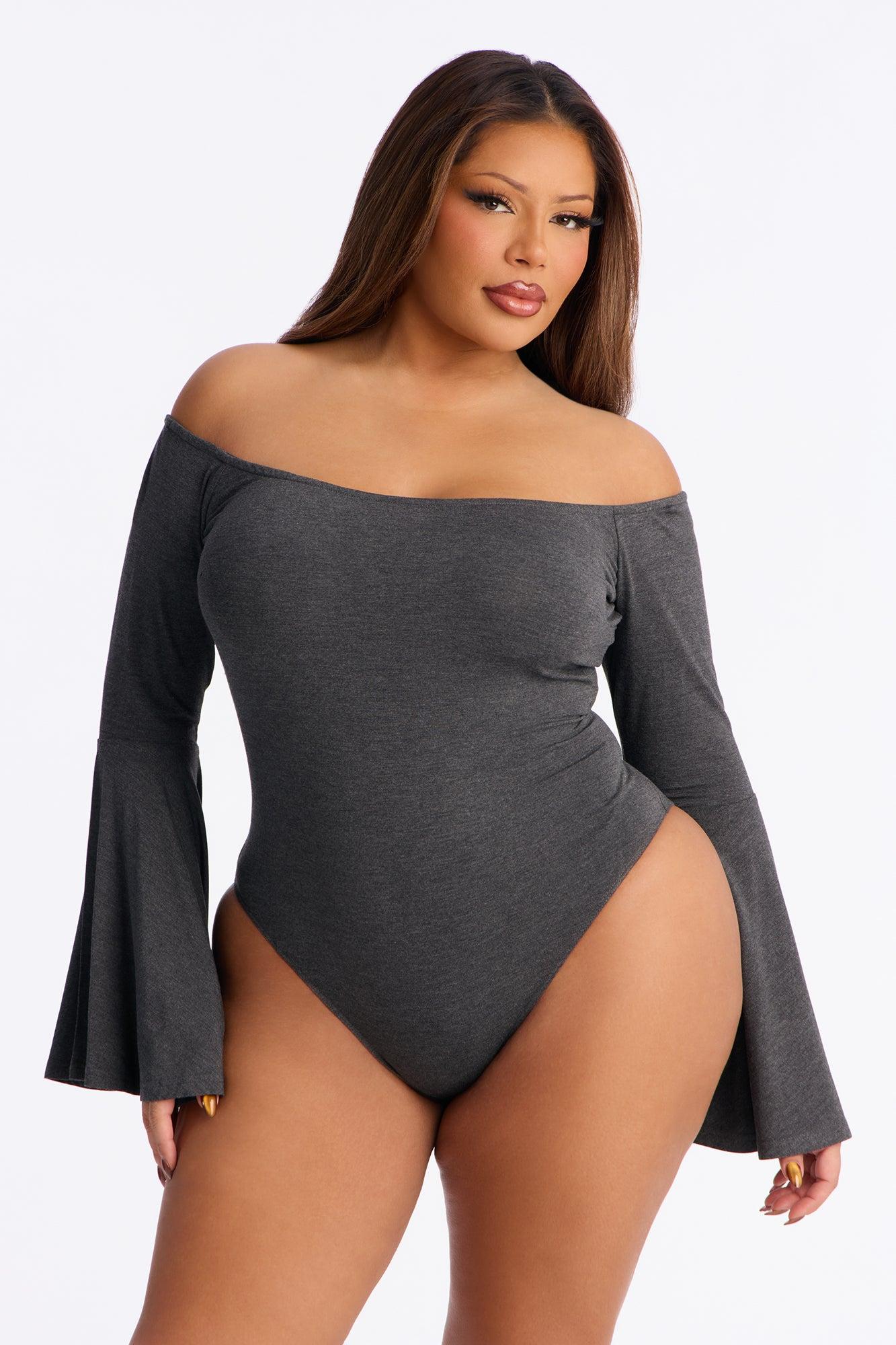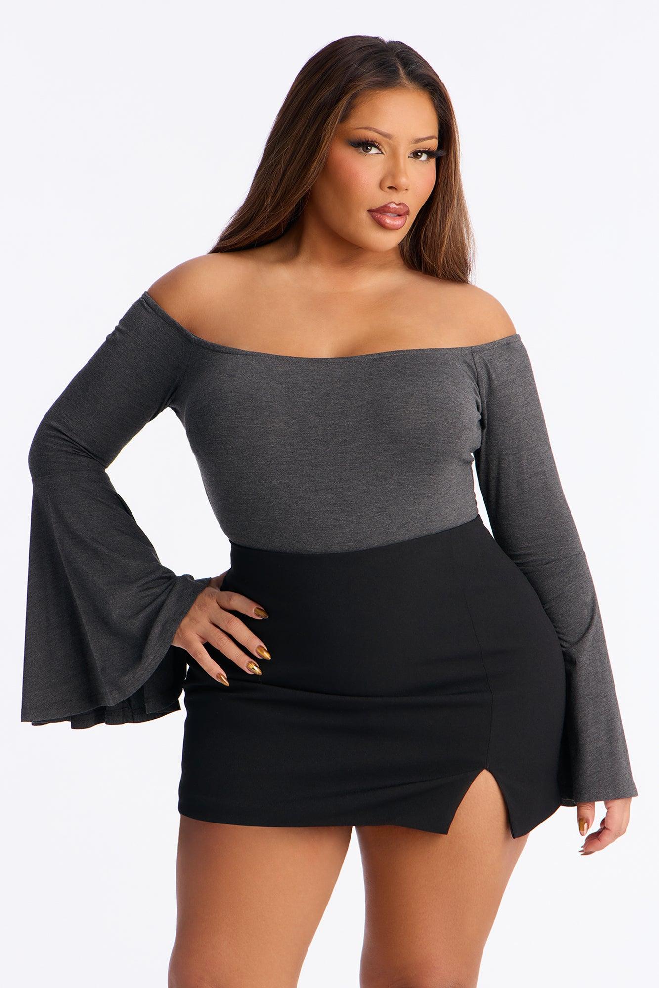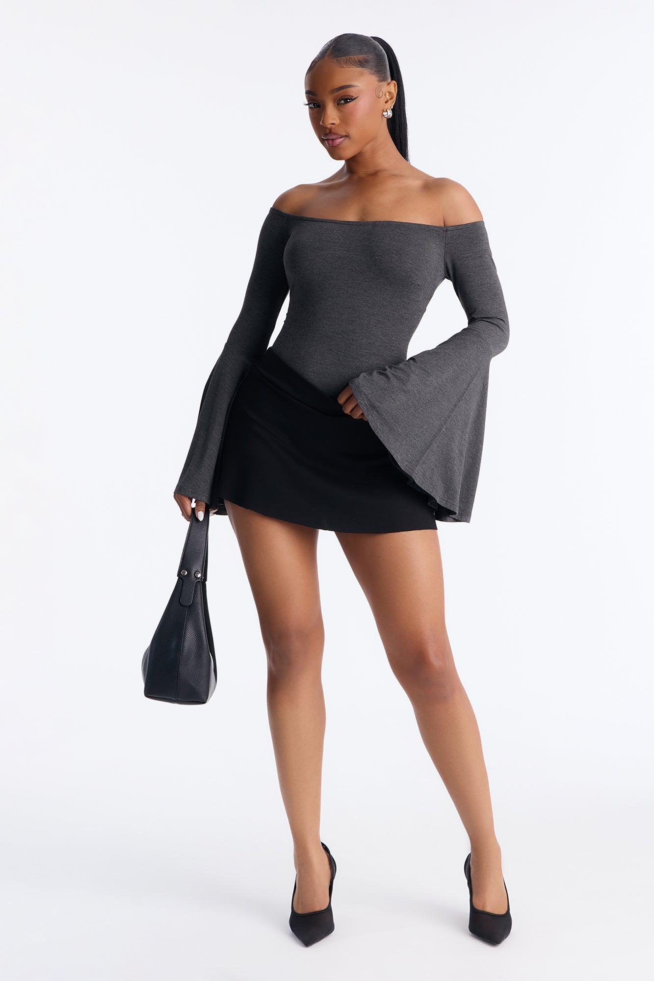Shani Long Sleeve Off Shoulder Top - Charcoal Female